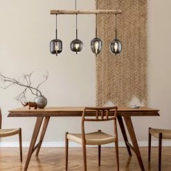 Pendelleuchte – schwarz-naturfarben – Höhe kürzbar