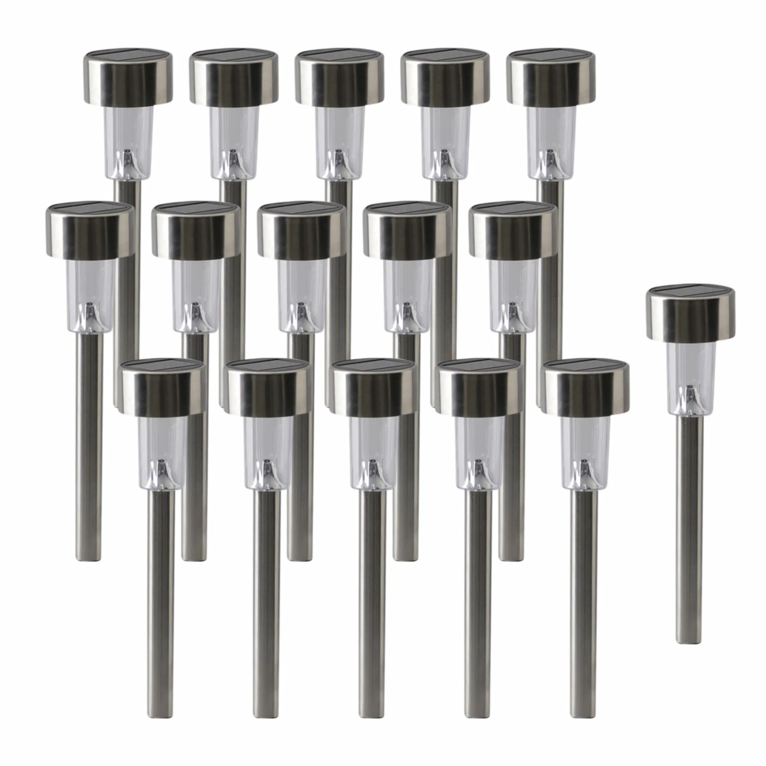 Mit 16 LED-Solarleuchten bringen Sie Licht in Ihren Garten. Nutzen Sie die praktischen Erdspieße, um den Gartenweg zu erleuchten oder um einzelne Gartenelemente auch bei Dunkelheit in Szene zu setzen – und das ganz ohne störende Leitungen oder Batterien.