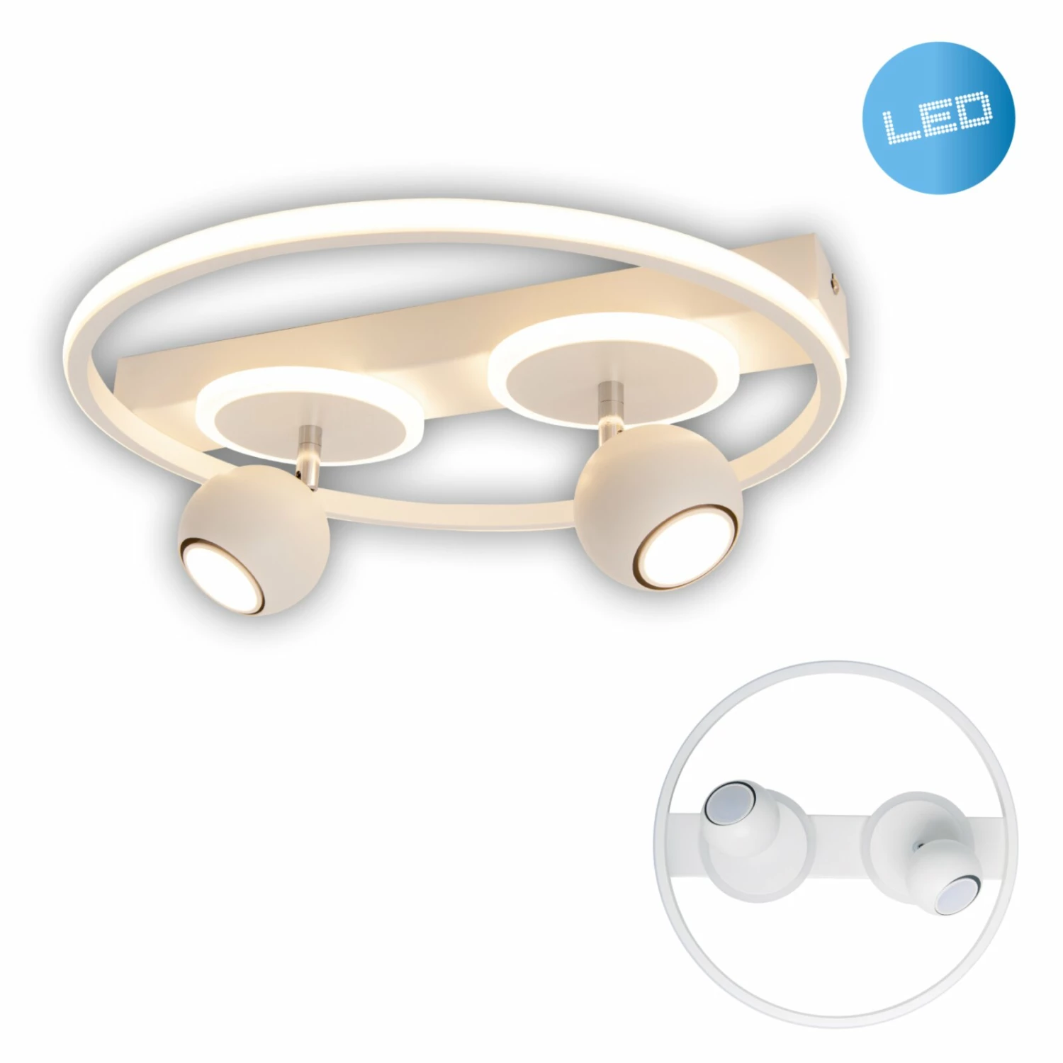 2er-Spot LED Deckenleuchte RONDA – weiß – 15 cm hoch