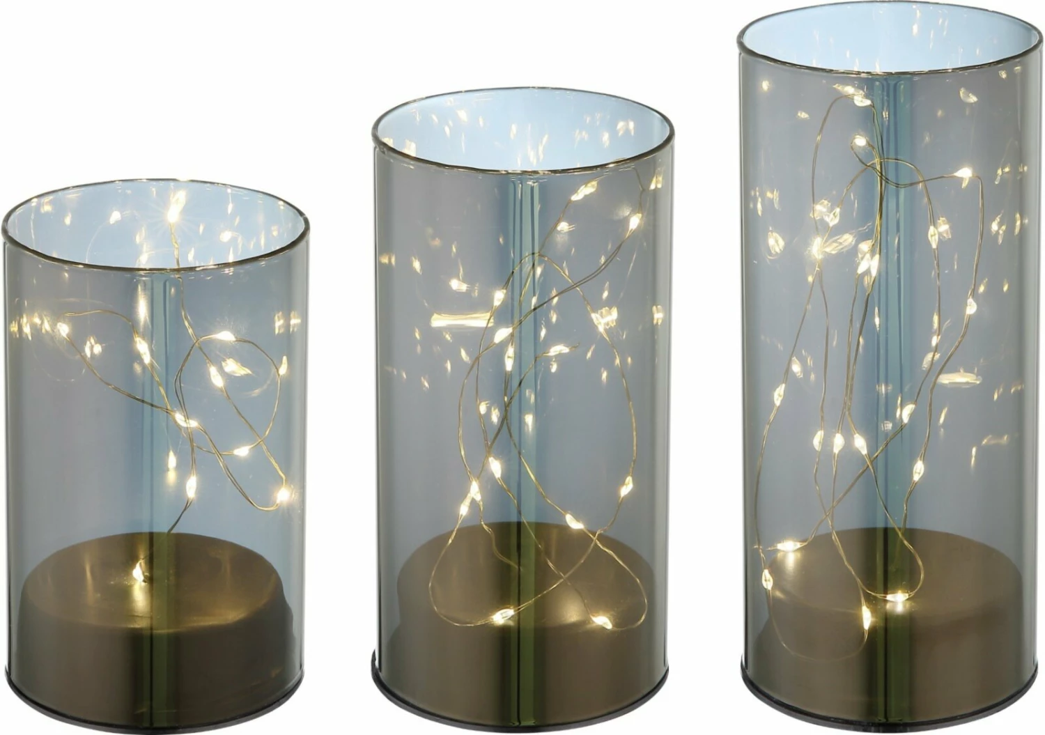 3er-Set LED-Tischleuchte – grau-rauchfarben