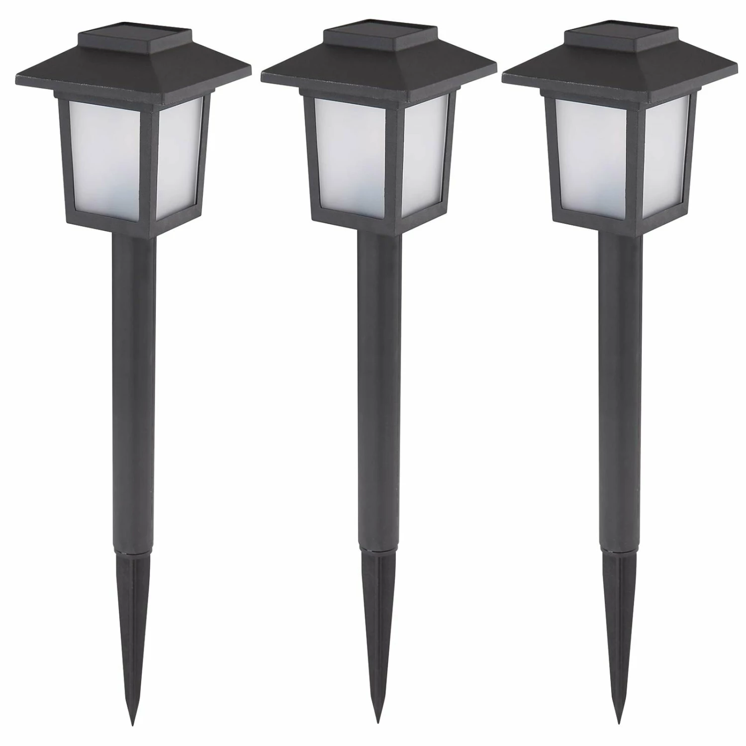 3er-Set Solar-LED-Erdspieß – schwarz – 37 cm hoch