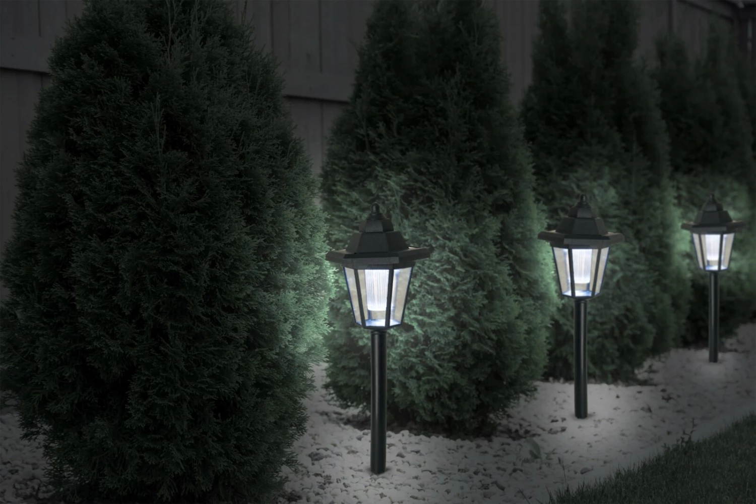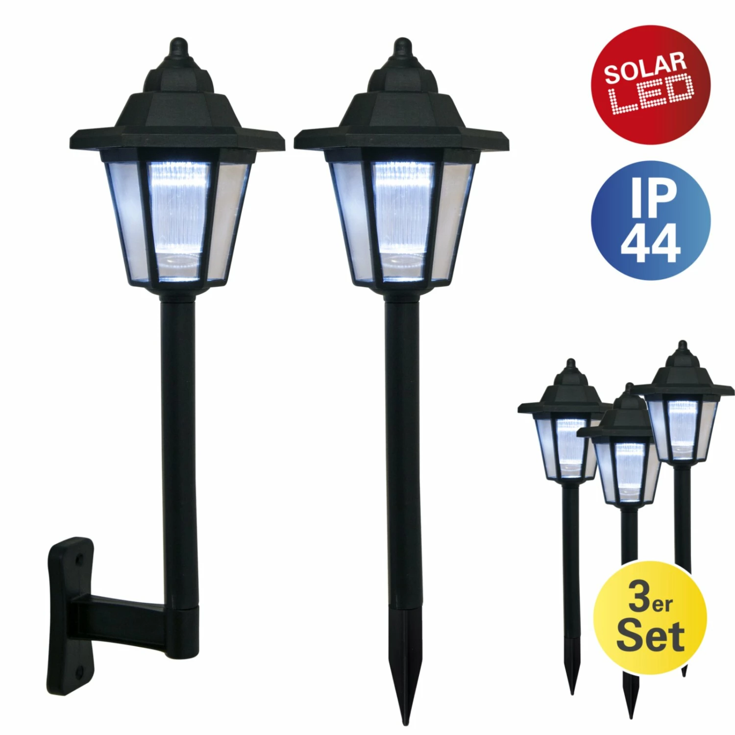 3er-Set Solar-LED-Erdspieß/Wandleuchte – schwarz – 11 cm breit