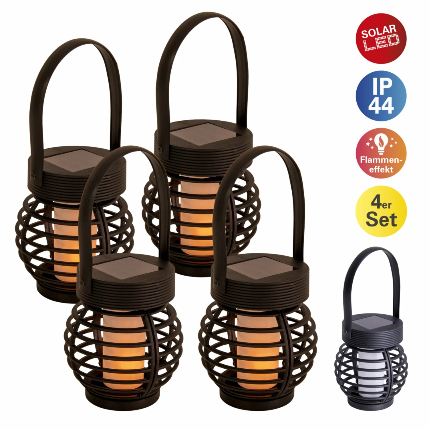4er-Set LED-Solarleuchten – schwarz – 11 cm