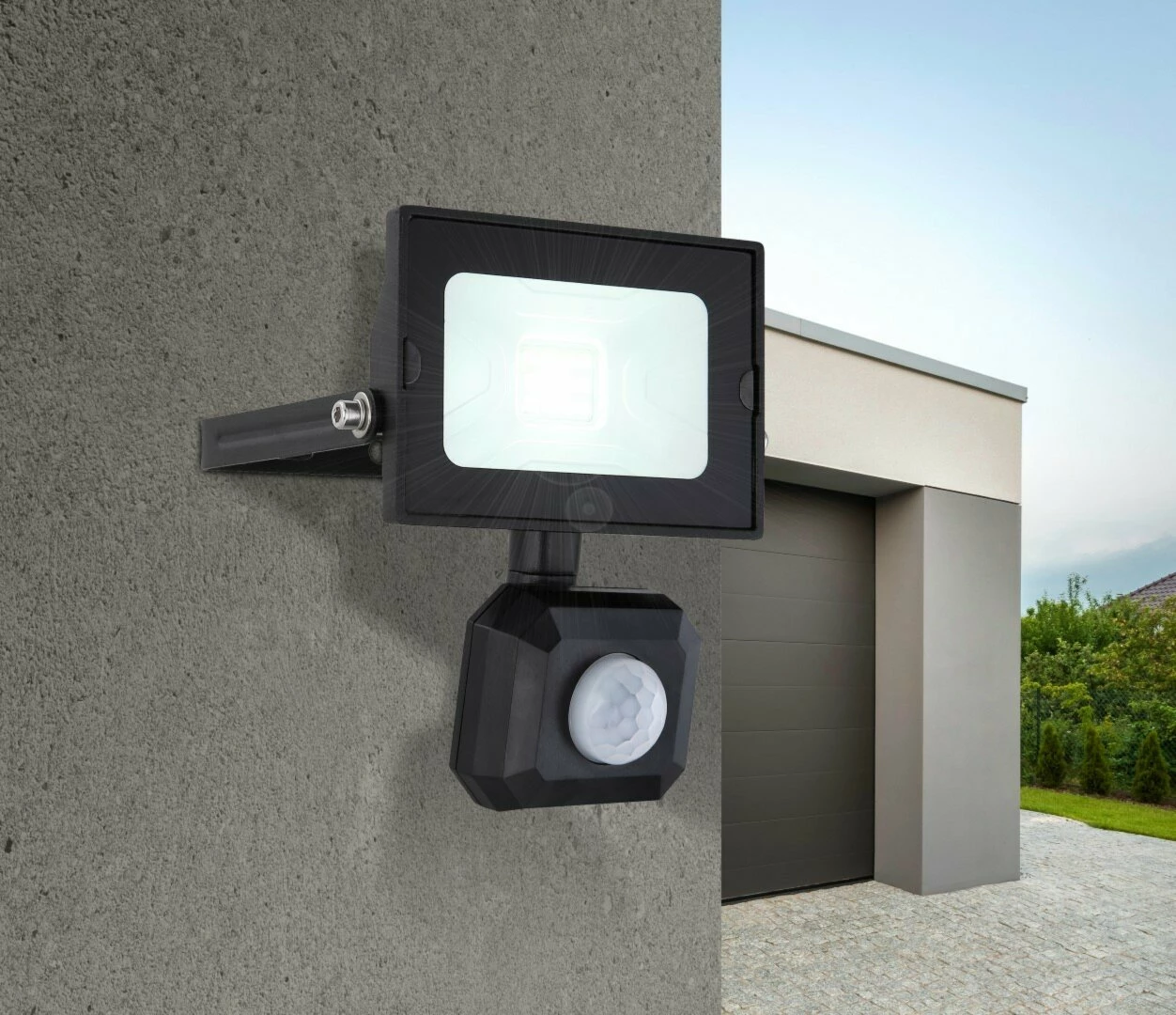 Die Außenleuchte in Schwarz, die schwenkbar ist, ist mit einem Bewegungssensor ausgestattet, der bis zu acht Meter weit Bewegungen wahrnimmt. Alles in allem ist die Außenleuchte eine schlichte Lampe, die sich optimal für die Beleuchtung im Außenbereich anbietet.