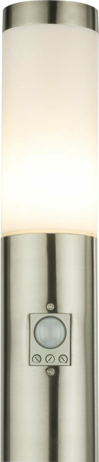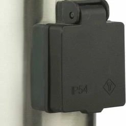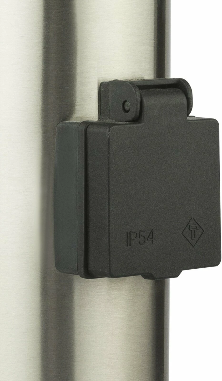 Diese Leuchte aus Edelstahl, die mit der Schutzart IP44 ausgestattet ist, eignet sich ideal für den Außenbereich. Sie sieht nicht nur sehr modern aus, sondern besitzt auch einen Bewegungsmelder sowie zwei Steckdosen. Die Lampe strahlt ein angenehmes Licht aus.