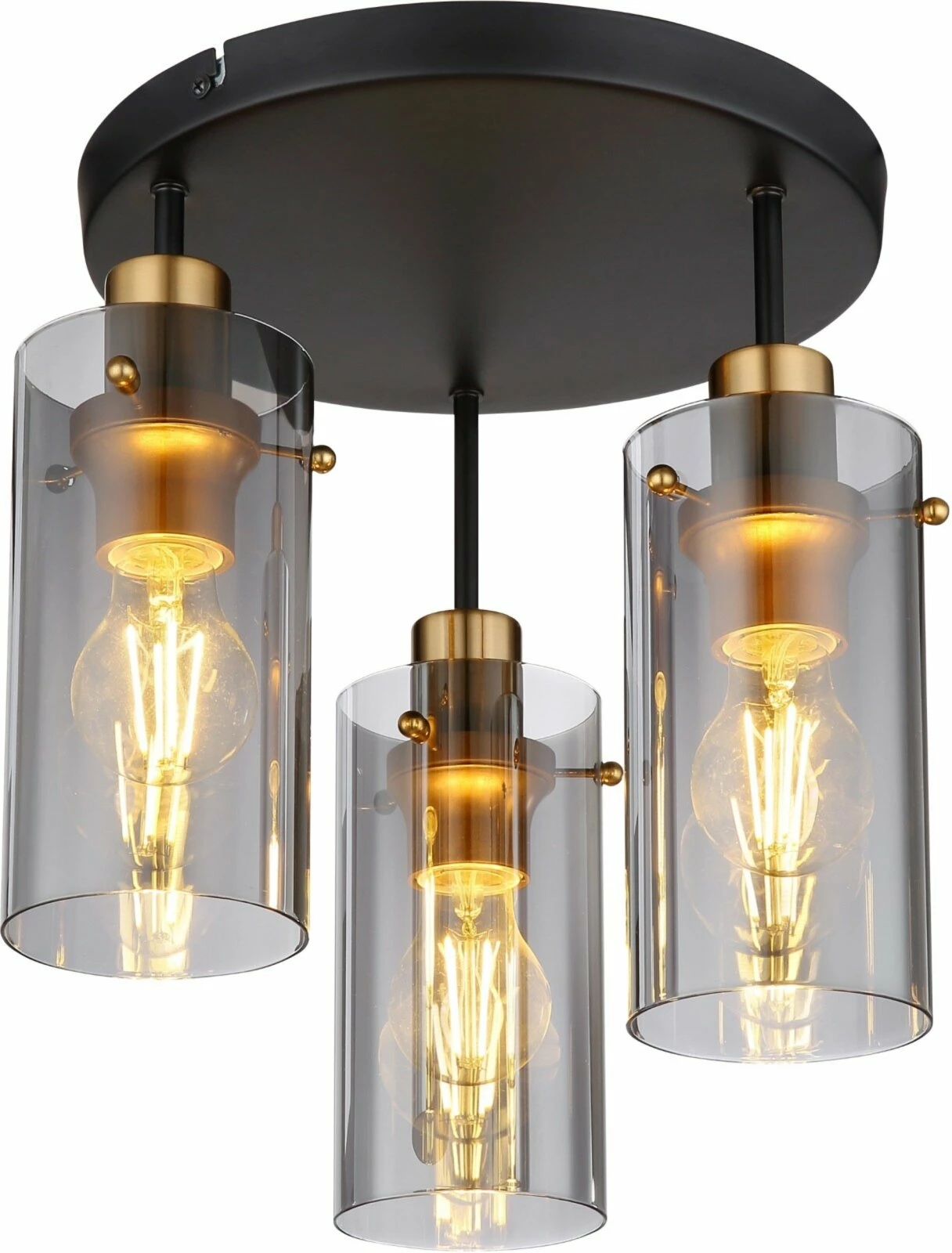 Diese Deckenlampe ist eine äußerst modische und stilvolle Lampe, denn die rauchfarbenden Gläsern unterstützen die modische Optik, in welcher die Farben miteinander im Einklang harmonieren. Die Lampe ist etwa 30 cm breit, 35 cm hoch und 30 cm tief.
