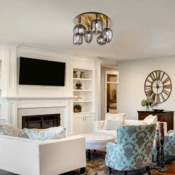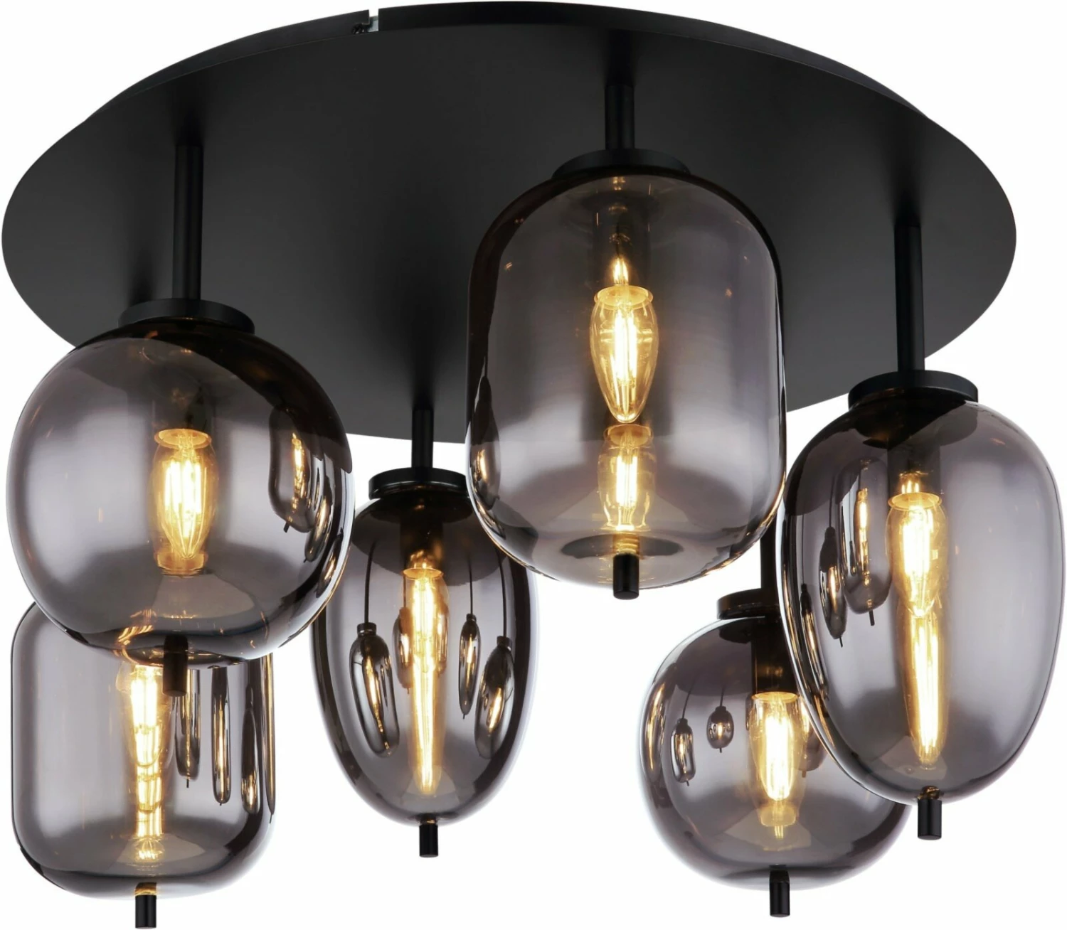 Diese Deckenlampe ist eine zugleich schlichte als auch moderne Pendelleuchte, die sich vorallem durch die unterschiedlich großen rauchfarbenden Gläser bemerkbar macht. Sie wird dir garantiert gefallen und kann wegen der schwarzen Farbe in vielen Wohnstilen integriert werden. Sie ist etwa 65 breit, 38 cm hoch und 65 cm tief.