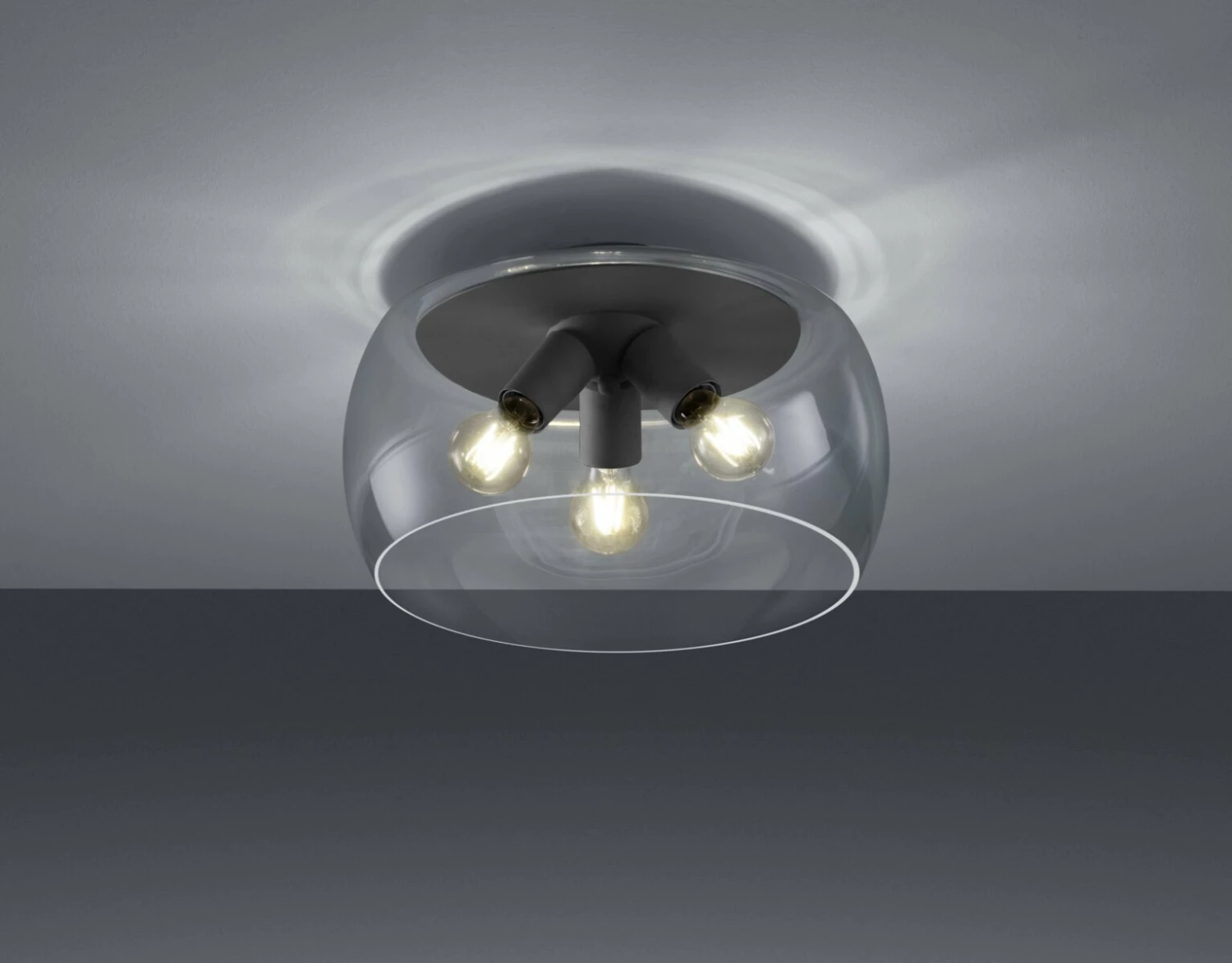 Deckenleuchte – anthrazit – 3-flammig – Glasschirm