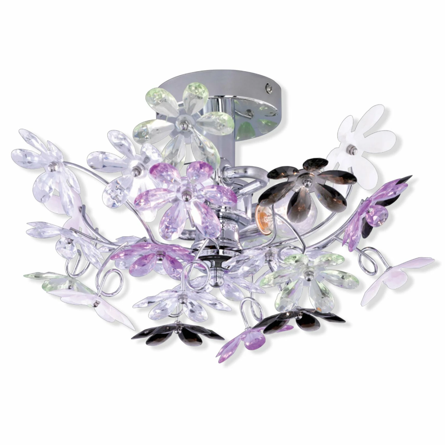Stylische Wohnraumleuchte mit Acrylblüten verziert. Das farbenfrohe und stilvolle Design ist ein toller Blickfang und verleiht Ihrem Raum einen ganz besonderen Charme. Des Weiteren besteht die Möglichkeit die farbigen Acrylglasblumen gegen transparente auszutauschen.