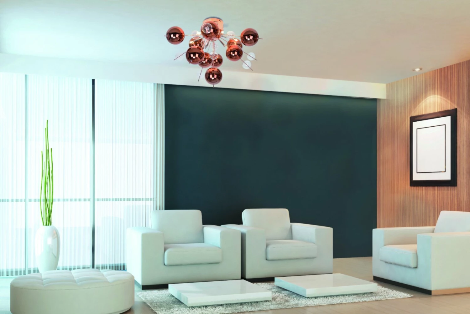Die Deckenleuchte EXPLOSION ist ein echtes Highlight in jedem Wohnraum. Sie versprüht Charme durch ihr einzigartiges Design und dient nicht nur als schöne Lichtquelle, sondern ist zudem ein dekoratives Element. Die Farbgebung Kupfer setzt nochmal einen zusätzlichen Akzent.