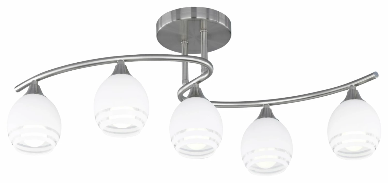 Das geschwungene Design und die teilsatinierten Lampenschirme verleihen dieser 5-flammigen Deckenleuchte eine besonders wohnliche Optik.