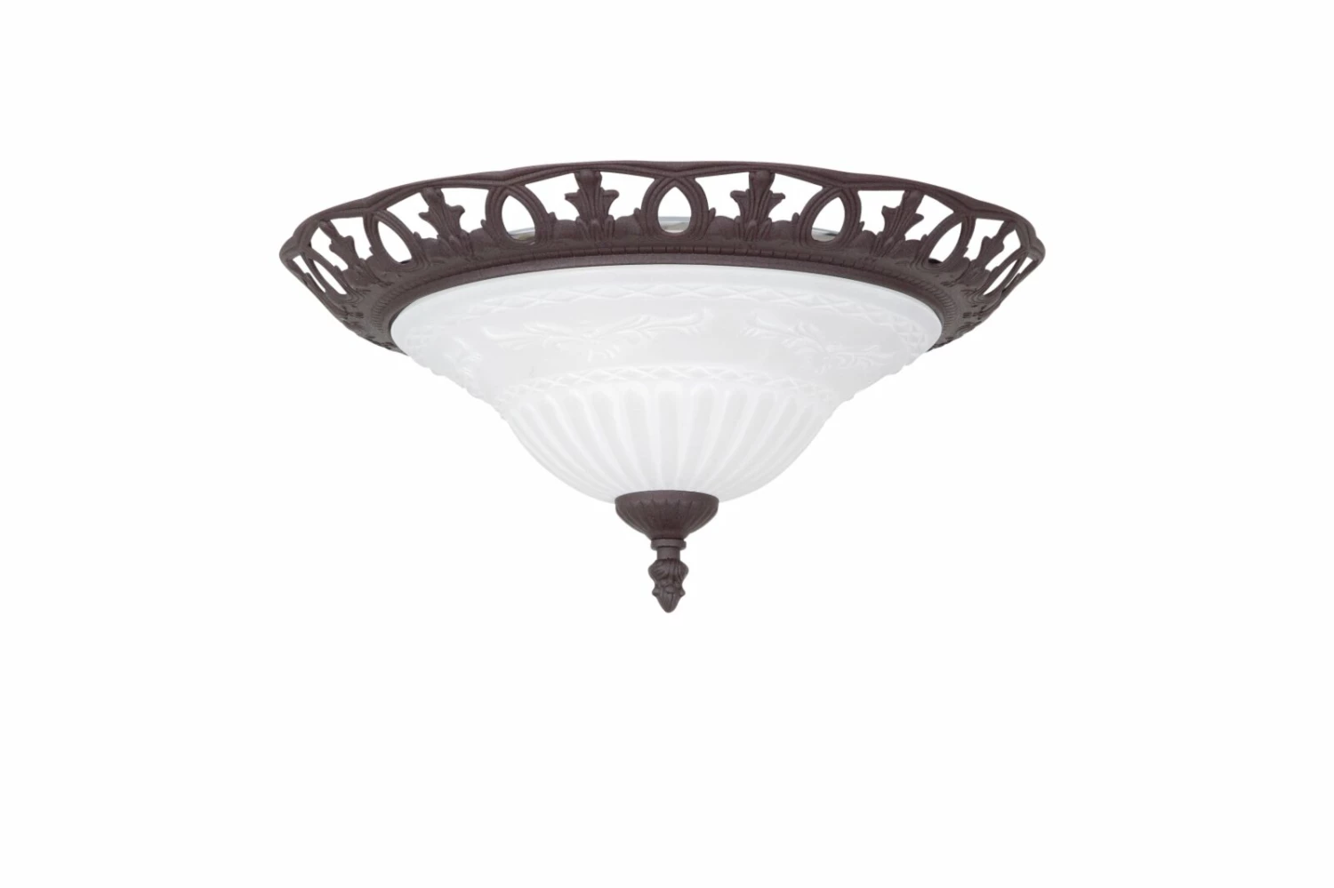 In einem klassischen Design präsentiert sich diese Deckenleuchte mit rostfarbiger Halterung und weißem Glasschirm. Diese Leuchte sorgt in Ihrem Eingangsbereich für das gewisse Etwas!