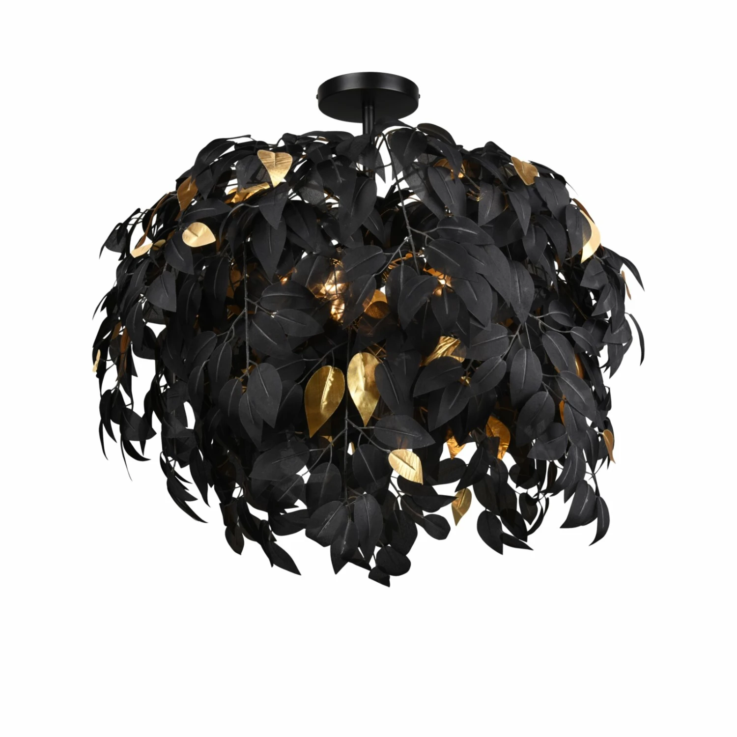 Eine verspielte Deckenleuchte. Sie trägt ein tolles Blätterkleid aus schwarzem Kunststoff und ist ein absoluter Eyecatcher. Geeignet ist die Leuchte für ein Leuchtmittel mit maximal 28 Watt. Eine Fassung E27 ist im Lieferumfang enthalten.