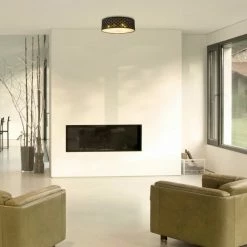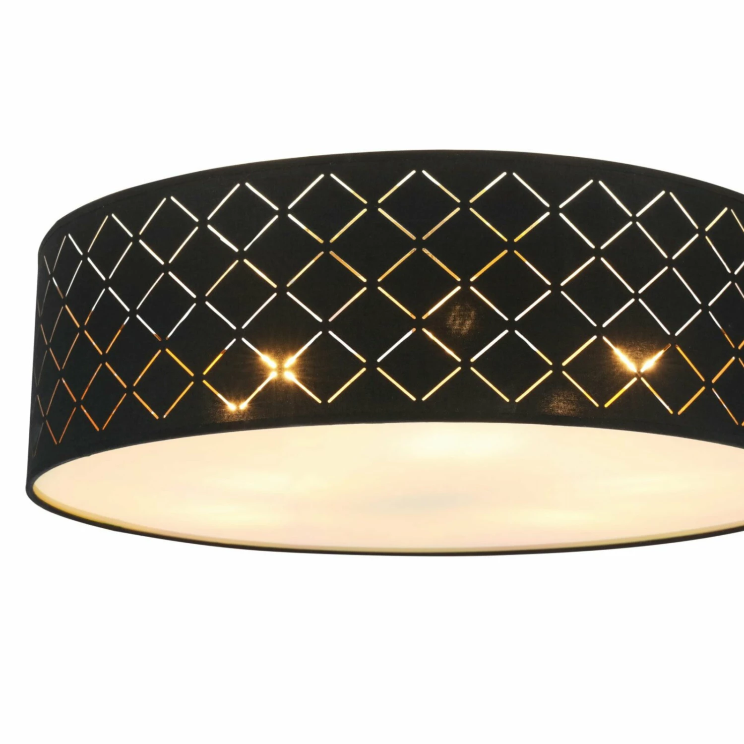 Diese Deckenleuchte punktet mit modernem Design. Die Dekorstanzungen und der im Inneren goldfarbene Leuchtschirm sorgen für gemütliches Ambiente in deinem Wohnraum. Die etwa 18 cm hohe Leuchte verfügt über 6 E27 Fassungen, so kannst du über die Leuchtmittel und damit verbunden die Lichtstärke und Lichtfarbe selber bestimmen.