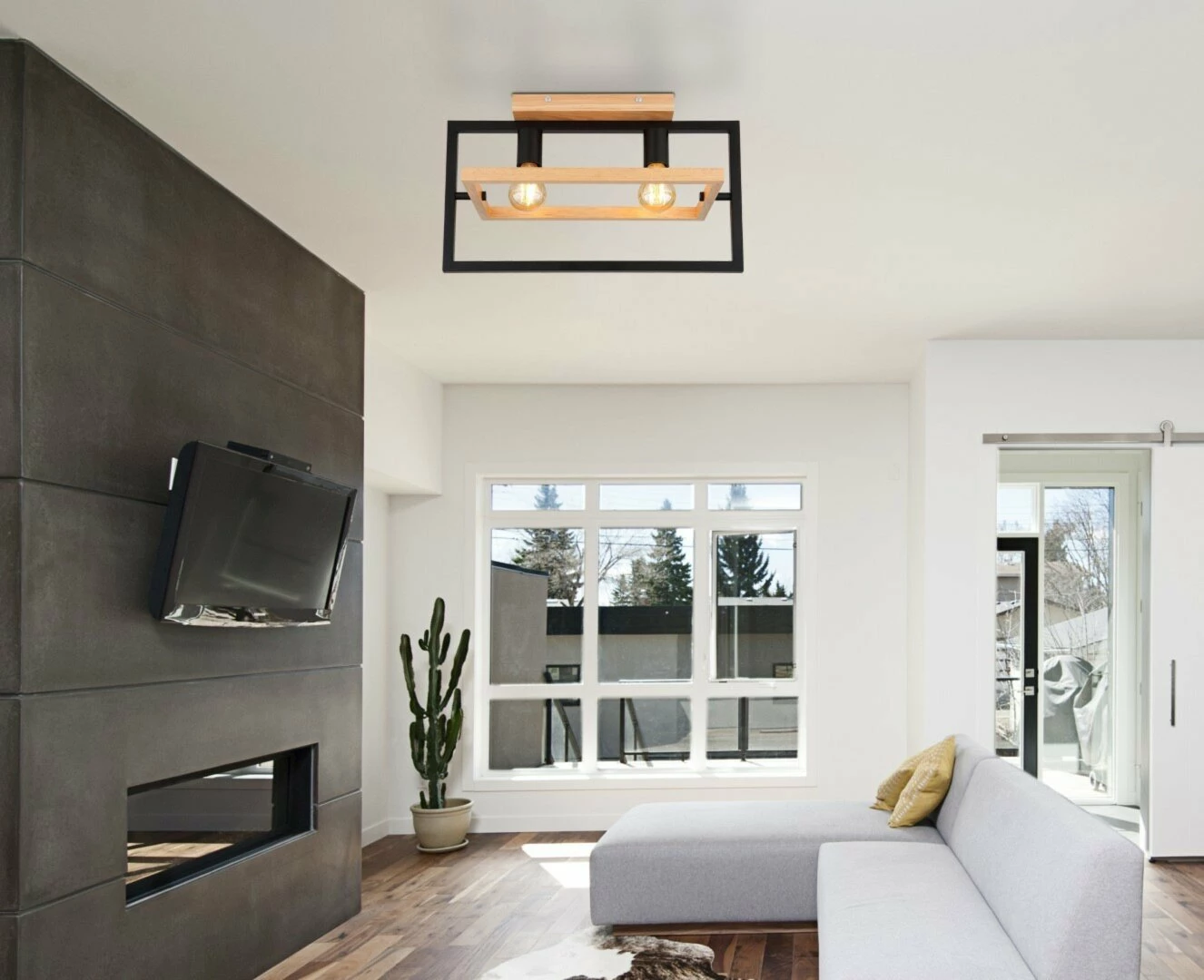 Das industrielle Design dieser Deckenleuchte wird eine moderne Ergänzung in deinem Zimmer sein. Die Lampe kannst in den verschiedensten Räumlichkeiten montiert werden und wird mit insgesamt zwei Flammen für eine perfekte Ausleuchtung sorgen.
