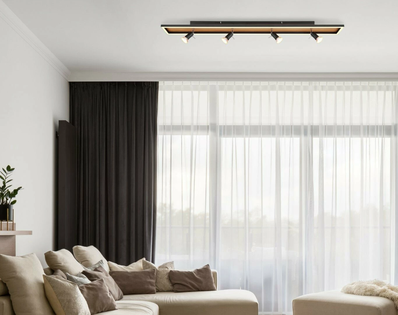 Die Deckenleuchte mit einer LED-Umrandung verfügt vier schwenkbare Spots, die du nach Belieben verstellen kannst. Ein vielfältig einsetztbarer Lichtspender, der durch seine warmweiße Lichtfarbe für eine angenehme Atmosphäre sorgt.