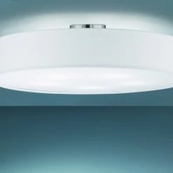Die Deckenleuchte besticht durch die Kombination aus schlichter Eleganz und einem gemütlichen Charakter und verleiht modernen Wohnräumen einen individuellen Look. Der weiße Stoffschirm lässt ein stimmungsvolles Licht- und Schattenspiel entstehen und ergänzt Wohn-, Schlaf- oder Eingangsbereiche um einen echten Blickfang.