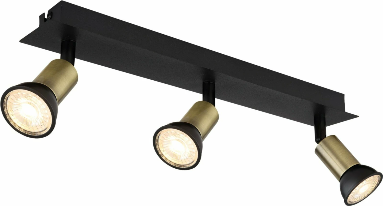 Der Deckenstrahler in Schwarz matt und Gold ist mit einem Wippschalter ausgestattet und kann wegen der Optik in so gut wie jeden Wohnstil integriert werden. Der Strahler ist 40 cm breit 9 cm hoch und 6 cm tief.