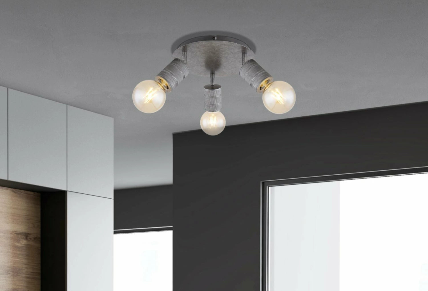 Der 3-flammige Deckenstrahler im Industrial-Style erhellt deine vier Wände! Geeignet ist die Lampe für drei Leuchtmittel E27 mit maximal 60 Watt, welche nicht im Lieferumfang enthalten sind.