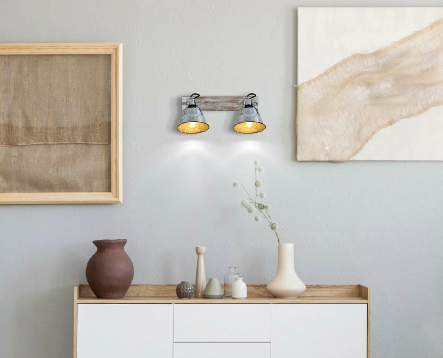 Dieser zweiflammige Wandstrahler passt dank seines modernen Designs in nahezu jede Inneneinrichtung. Du kannst die Lampe mit zwei Leuchtmitteln mit maximal 60 Watt ausstatten.
