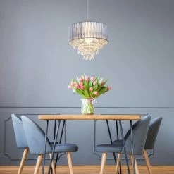 Deko-Pendelleuchte KRISTALLO – grau – Ă 30 cm