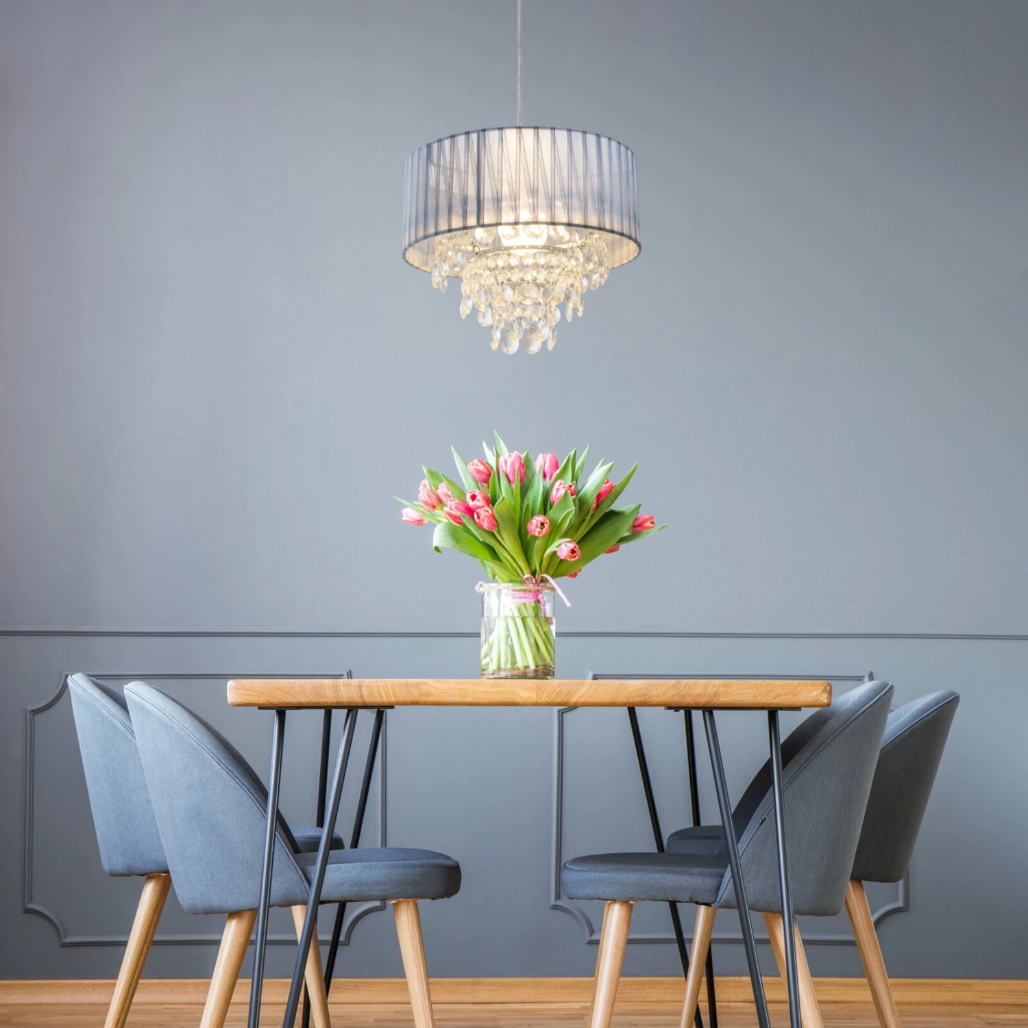 Sie wollen Ihr Wohn-, Schlaf-, oder Esszimmer veredeln? Dann ist das mit der Deko-Pendelleuchte KRISTALLO gar kein Problem. Das graue Pendel zusammen mit den Kunsstoffkristallen macht das im Nu möglich.