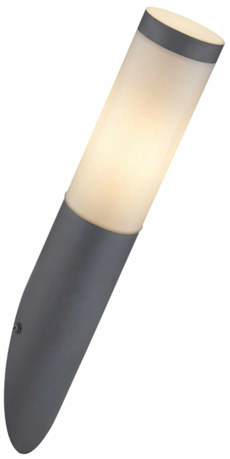 Diese formschöne Außenleuchte in Form einer Fackel ist die ideale Lampe für den Garten oder den Eingangsbereich. Die Wandlampe besteht aus Edelstahl, Kunststoff und die schlichte Farbe in Grau passt in jeden Außenbereich. Aufgrund der Schutzart IP44 bietet die Lampe Schutz gegen allseitiges Eindringen von Spritzwasser und ist vor dem Eindringen fester Fremdkörper mit einem Durchmesser über einem Millimeter geschützt.