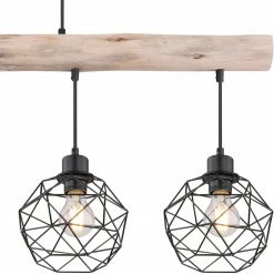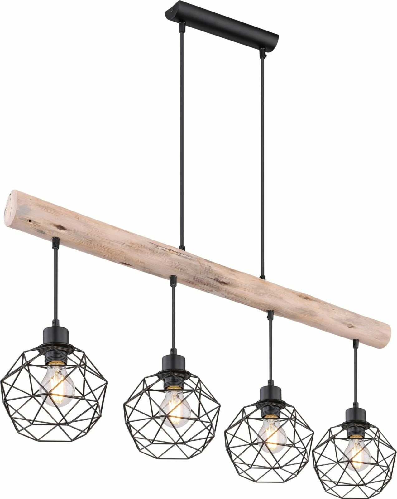 HĂ€ngeleuchte – holzfarben-schwarz – 85 cm – 4-flammig