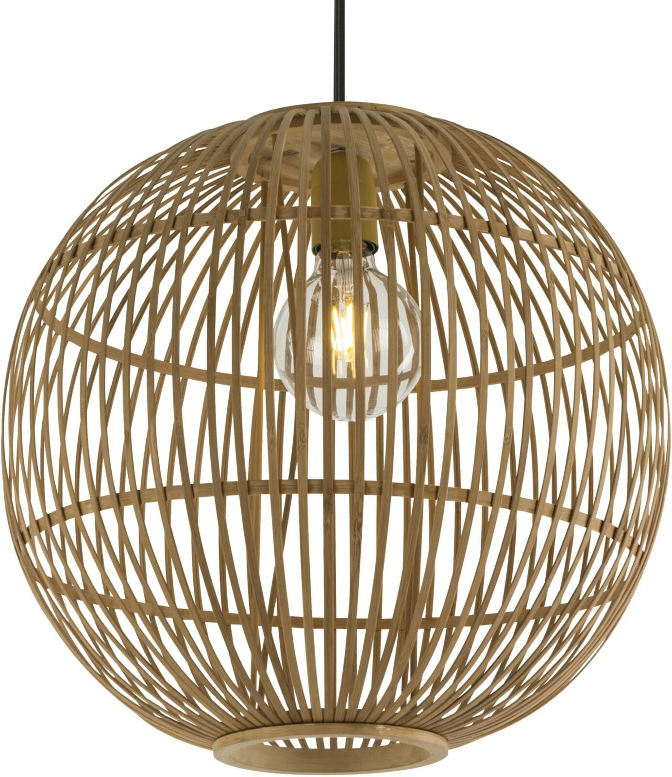 Diiese Hängeleuchte bringt Urlaubsfeeling in deine Wohnung. Hergestellt ist der 40 cm breite Lampenschirm aus Bambus. Ausstatten kannst du sie mit einem Leuchtmittel mit einer Leistung von bis zu 60 Watt.