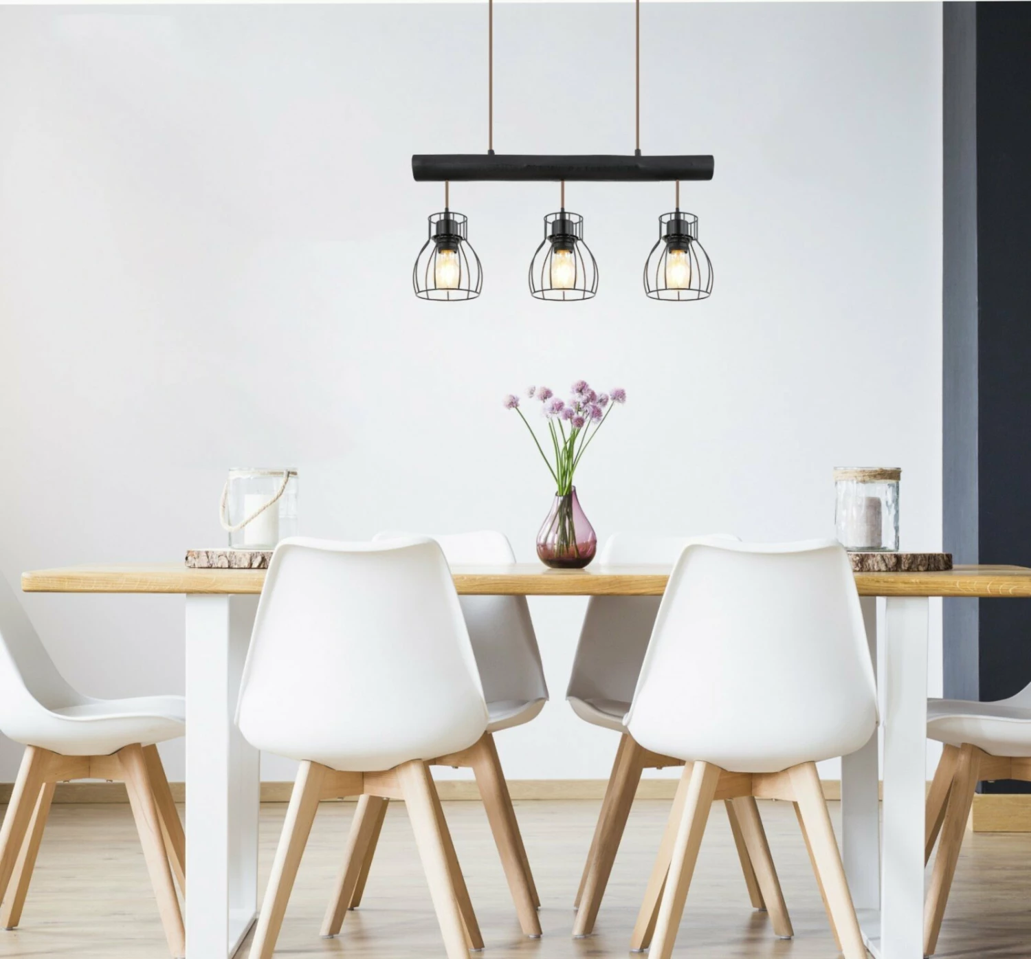 Die HĂ€ngeleuchte in der Farbe Schwarz ist die optimale ErgĂ€nzung fĂŒr deine Inneneinrichtung. Sie ist modern und zeitlos und kann in jedem Raum angebracht werden. Du kannst die Lampe mit drei E27-Leuchtmitteln deiner Wahl bestĂŒcken.Â
