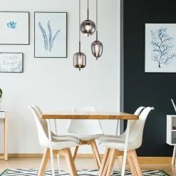 Diese HĂ€ngeleuchte ist eine wundervolle ErgĂ€nzung fĂŒr deinen Wohn- oder Essbereich. Sie besitzt drei Glasschirme in verschiedenen Formen, die mit E14-Fassungen ausgestattet sind. So kannst du sie mit Leuchtmitteln deiner Wahl bestĂŒcken.Â