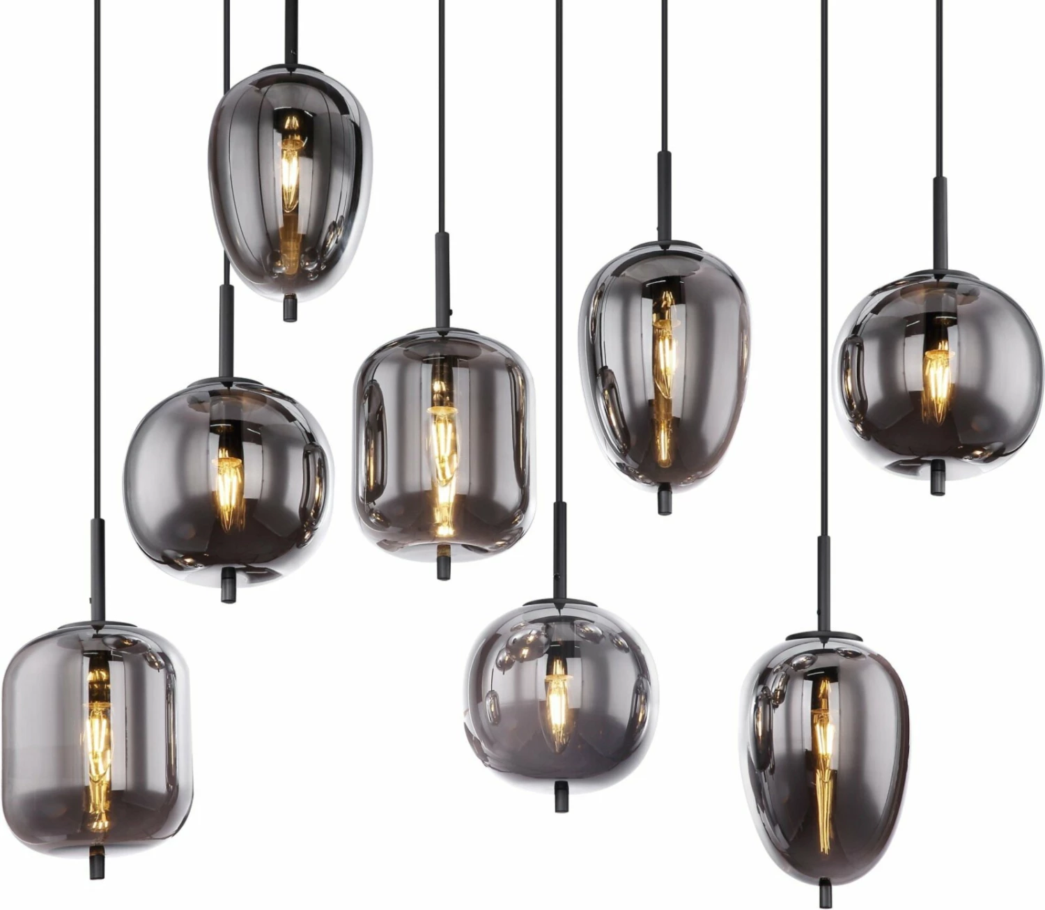 Diese HĂ€ngeleuchte ist ein echter Blickfang! Sie besteht aus acht hĂ€ngenden Glaskugeln mit E14-Fassungen in verschiedenen Formen und GröĂen. Sie eignet sich hervorragend fĂŒr deinen Wohn- oder Essbereich und sorgt fĂŒr eine tolle AtmosphĂ€re.Â
