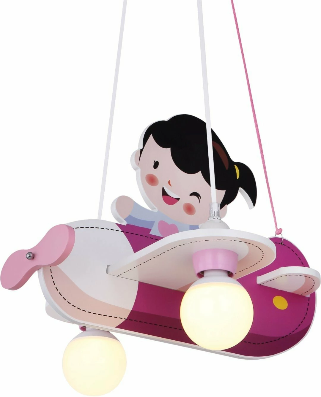 Diese Kinderzimmerlampe wird deinem Kind ein Lächeln ins Gesicht zaubern, denn die Lampe versprüht durch das Design eine positive Atmosphäre. In diesem rosanen Flugzeug sitzt ein klenes Mädchen. So scheint die Lampe mehr Spielzeug als Leuchte zu sein und ist damit genau das richtige für das Zimmer einer kleinen Pilotin.