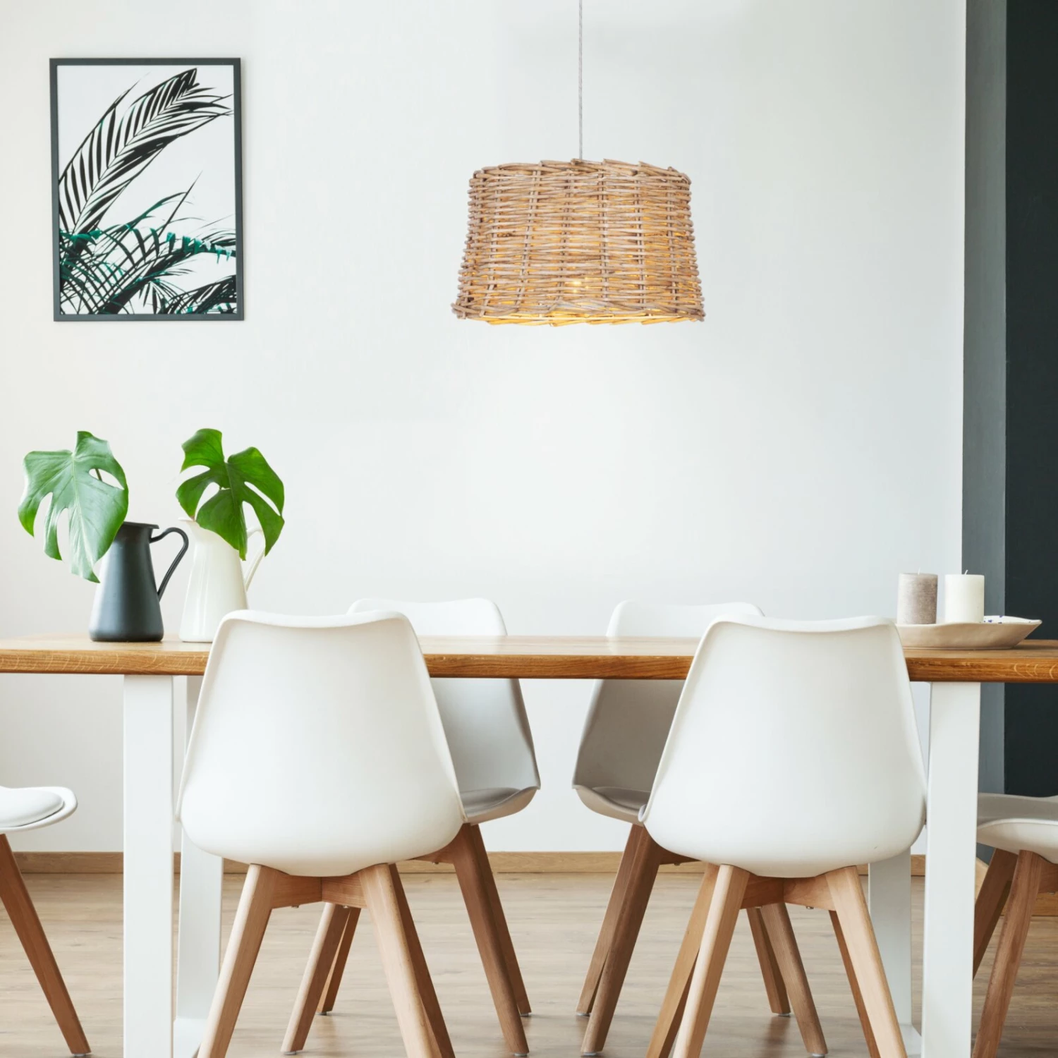 Die wunderschöne Korb-Pendelleuchte BASKET lĂ€sst sich wunderbar zum Boho Style kombinieren. Die Pendelleuchte kann mit einem E27 Leuchtmittel mit maximal 60 Watt bestĂŒckt werden.