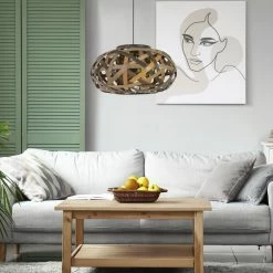 Die Pendelleuchte verschönert Ihre Einrichtung mit ihrem auĂergewöhnlichen Stil. Die Kombination aus 3 brĂ€unlichen Farbtönen rundet das Design insgesamt ab und sorgt fĂŒr ein reinliches NaturgefĂŒhl in Ihrer Wohnung. Dadurch, dass die Leuchte eine auĂergewöhnliche Form besitzt, wird der Raum auf eine besondere Weise erhellt.Â