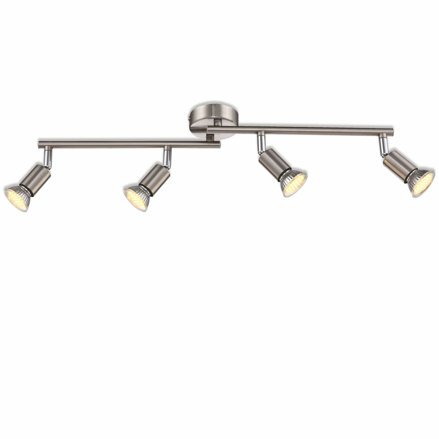 Moderner Deckenbogen mit 4 LED-Spots. Die enthaltenen Leuchtmittel geben ein warmweißes Licht ab und können durch ihre bewegliche Halterung präzise ausgerichtet werden. Das reduzierte Design wirkt sehr edel.
