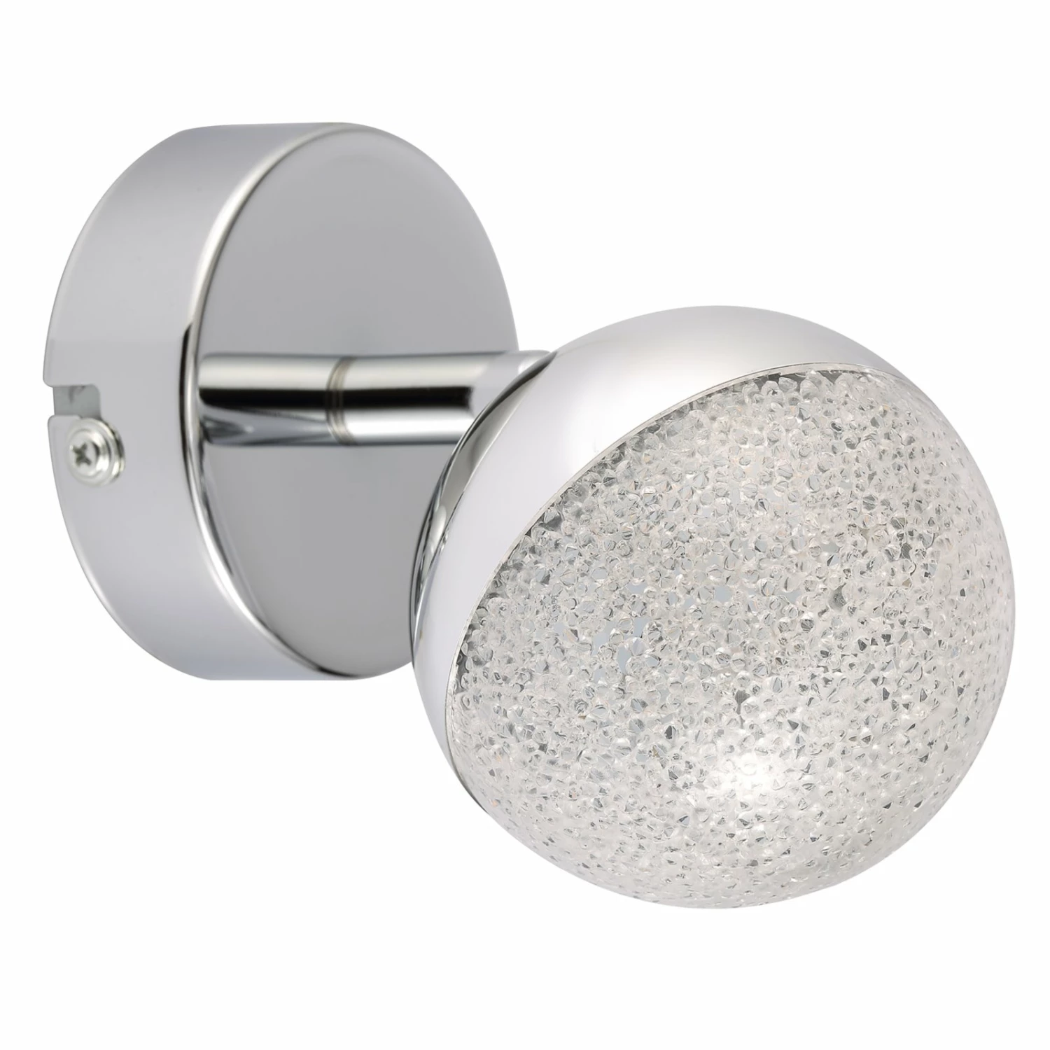 Der LED-Spot besticht besonders durch sein trendiges Design. Ein kugelförmiges Lichtelement, welches mit einem Kristalleffekt versehen wurde, macht diesen Spot zu etwas Besonderem.