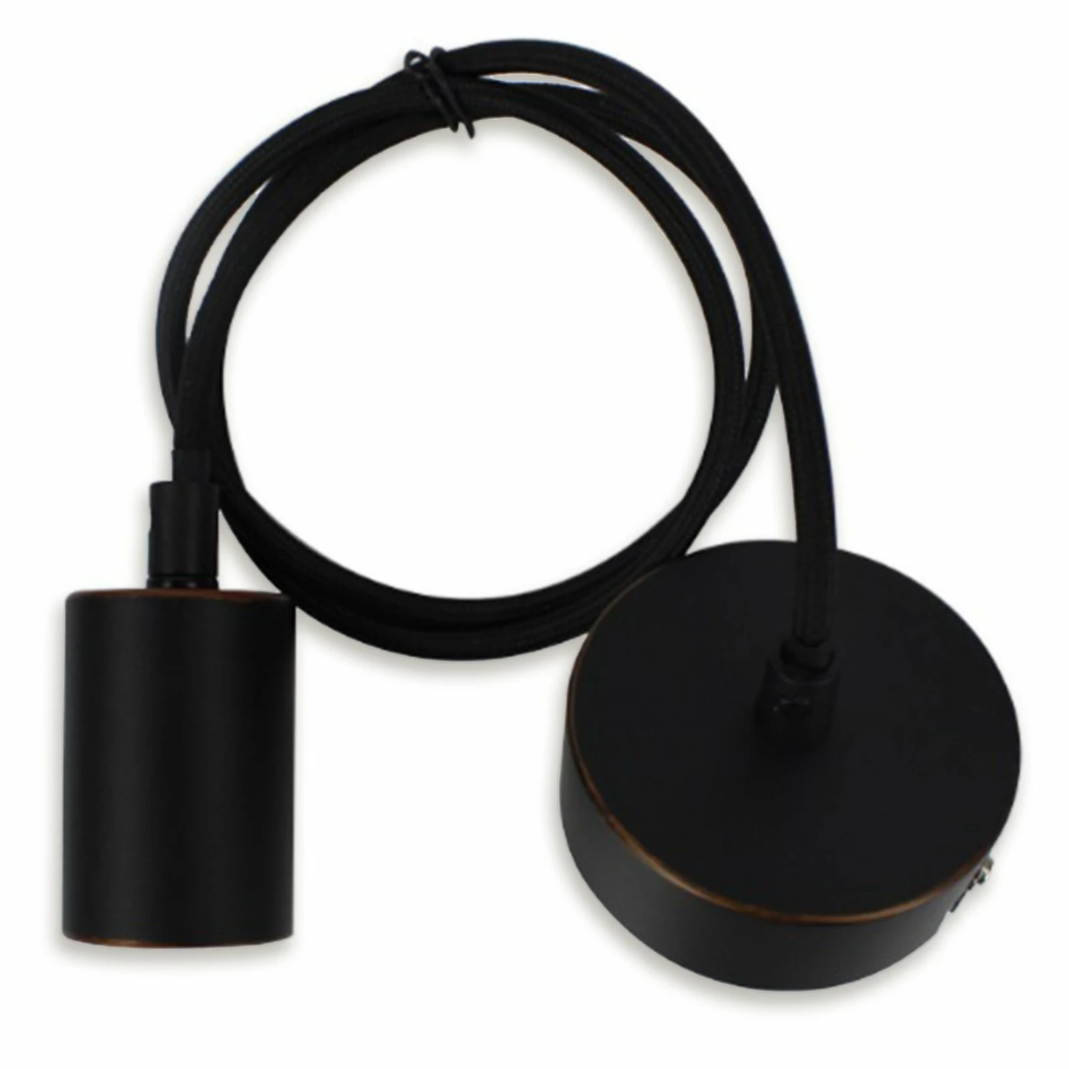 In einem schlichten Design präsentiert sich dieses 100 Zentimeter lange und schwarze Schnurpendel. Es setzt sich aus einem Textikabel und einem Baldachin und einer Fassung aus Metall zusammen.