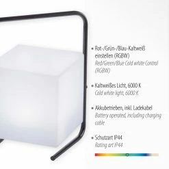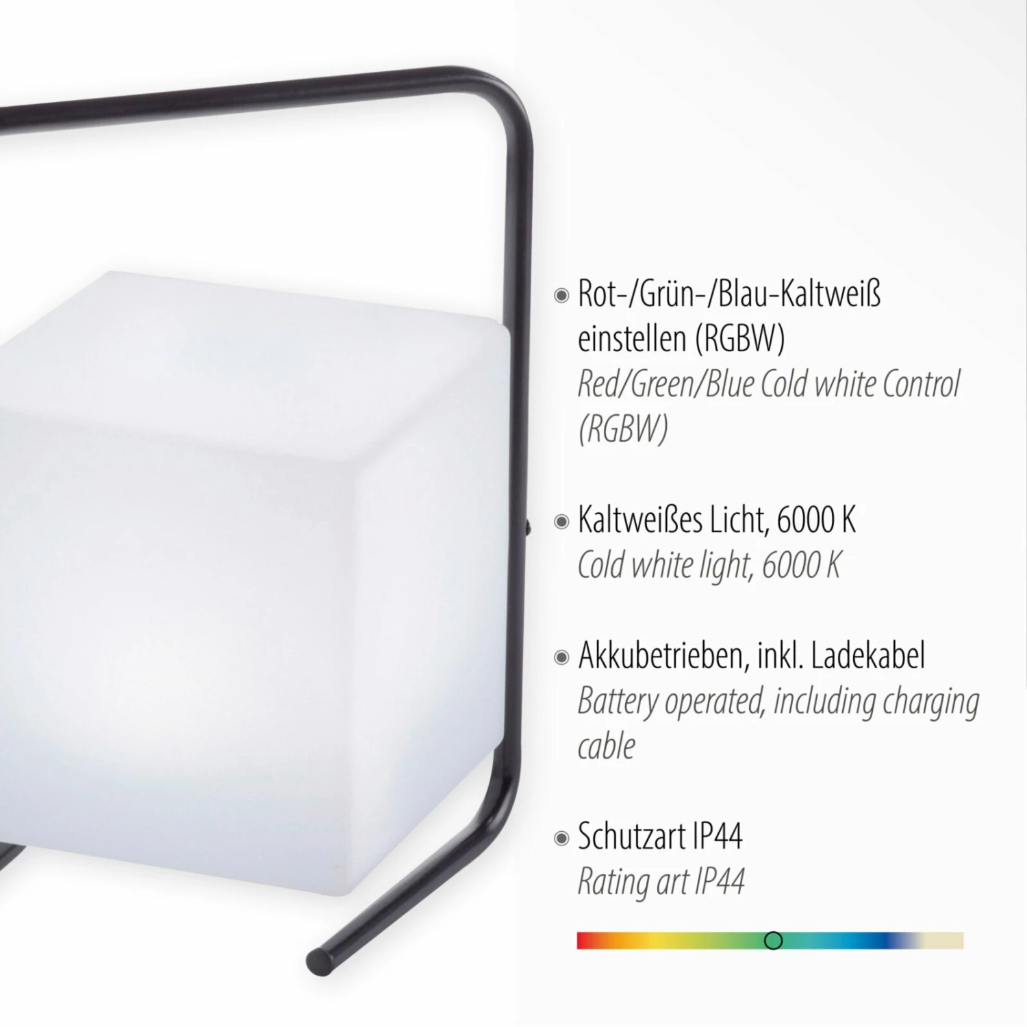 LED-Akku-Tischlampe – weiß-schwarz – RGB – 29 cm hoch