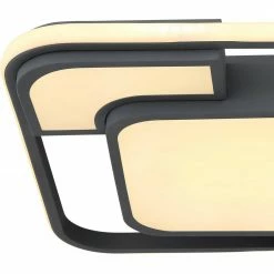 Diese quadratisch förmige Deckenleuchte mit einem graphitfarbenen Metallrahmen eignet sich hervorragend für alle Innenräume. Das vorhandenen LED-Leuchtmittel leistet 1100 Lumen starkes Licht bei einer angenehmen Lichtfarbe von 3000 Kelvin (warmweiß).