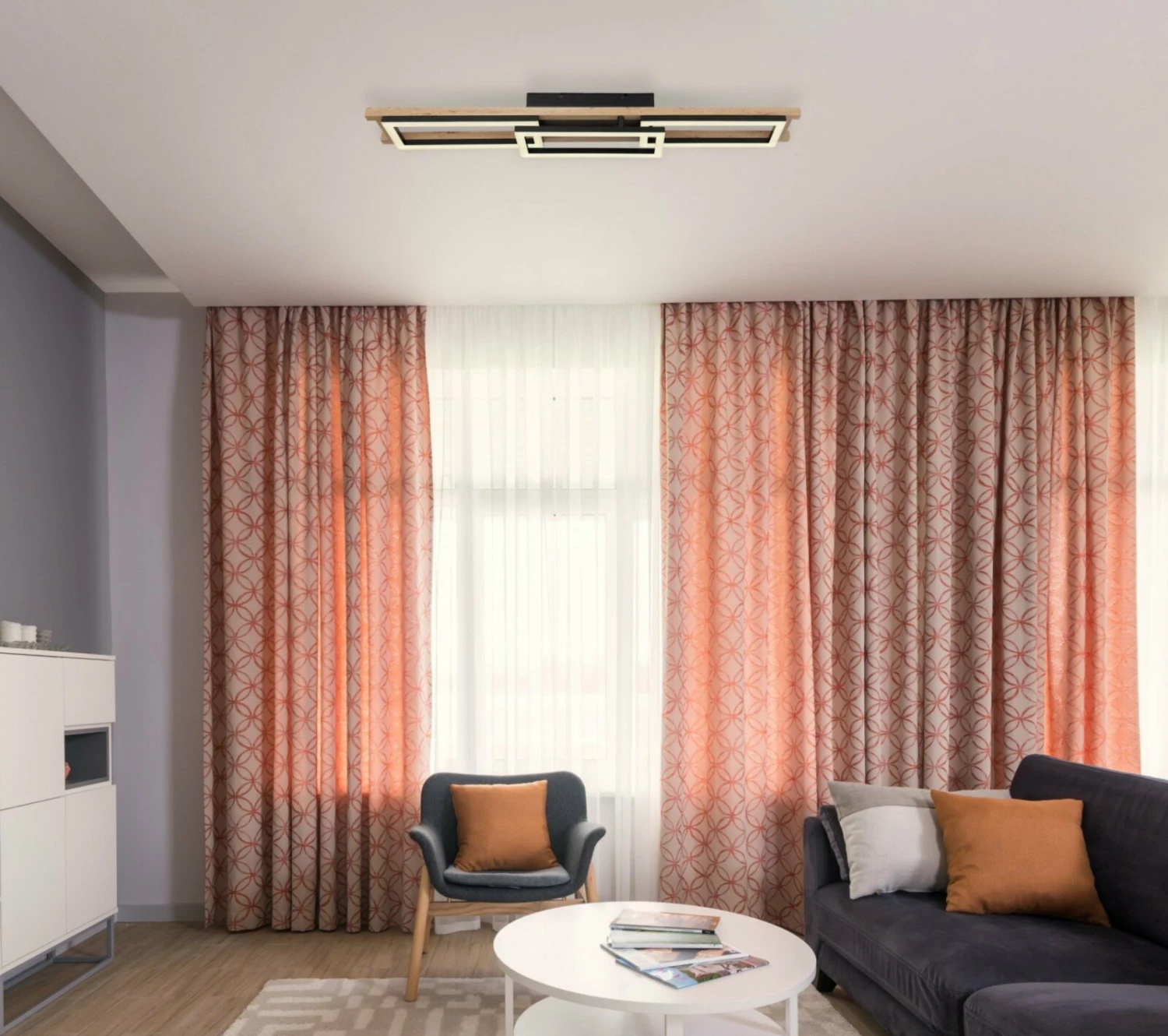 LED-Deckenleuchte – holzfarben – schwarz mattt – 100 cm