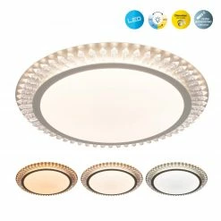 Eine schicke goldfarbige LED-Deckenlampe mit wunderschönen Kristallelementen. Diese Leuchte verfügt über eine 45 Watt starke Leistung und hat eine Dimmfunktion. Sie können die Lampe in drei verschiedenen Farbstufen von warmweiß bis tageslichtweiß einstellen.