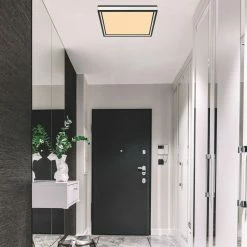 Diese LED-Deckenleuchte in einem modernen Stil passt ideal in jede Einrichtung. Der Rahmen in einem matten Schwarz mit Spiegelrand in Chrom wirkt besonders schlicht und zugleich edel. Mit einer Höhe von etwa 6,5 Zentimeter ist die Leuchte besonders nah an der Decke und stört so auch nicht das gesamte Ambiente.