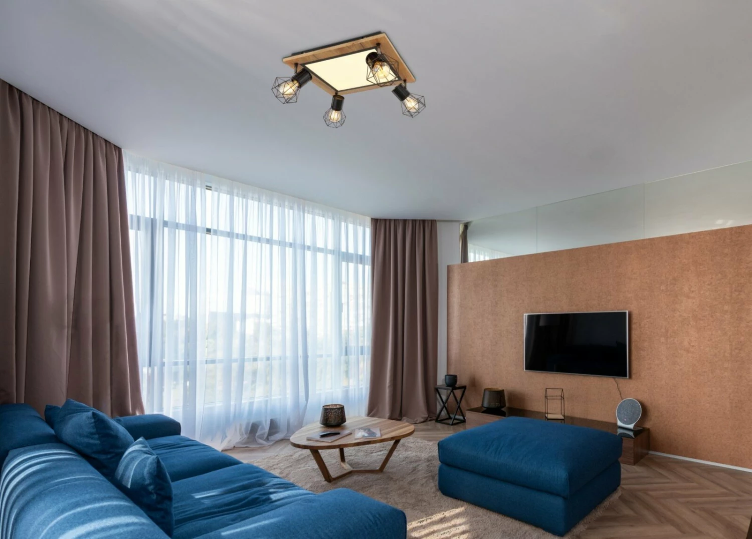 Schöne 5-flammige LED-Deckenleuchte in den Farben Schwarz matt und Holzfarben. Eine LED-Leuchte ist bereits im Lieferumfang enthalten, die vier E27 Leuchtmittel sind separat erhältlich. Da die Lampe über mehrere Stufen verfügt, kannst du selber entscheiden, wie viel Licht du benötigst.