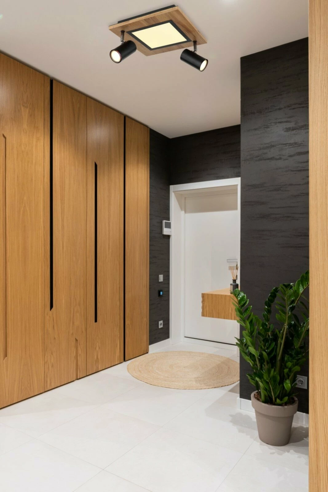 LED-Deckenleuchte – schwarz matt – Holzoptik