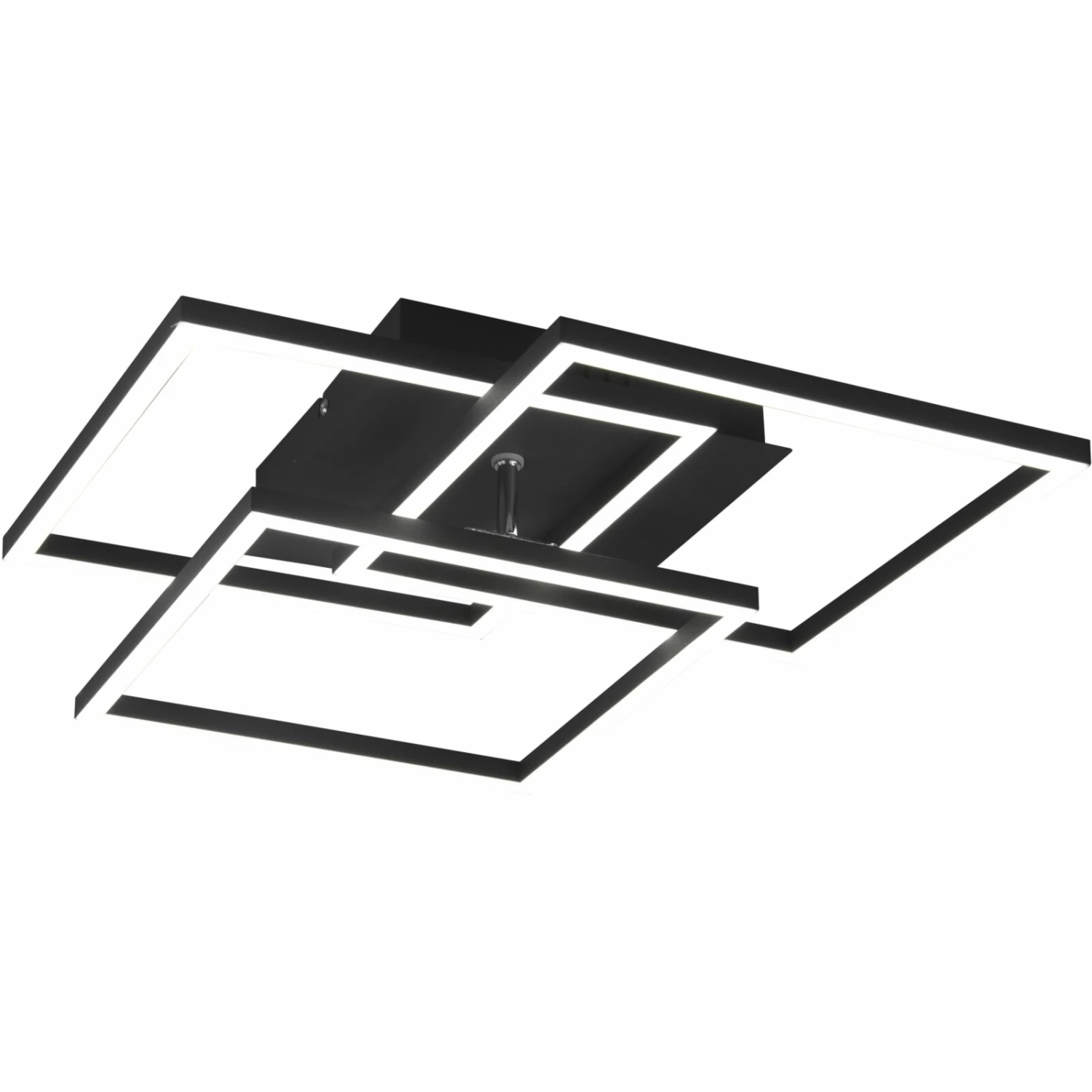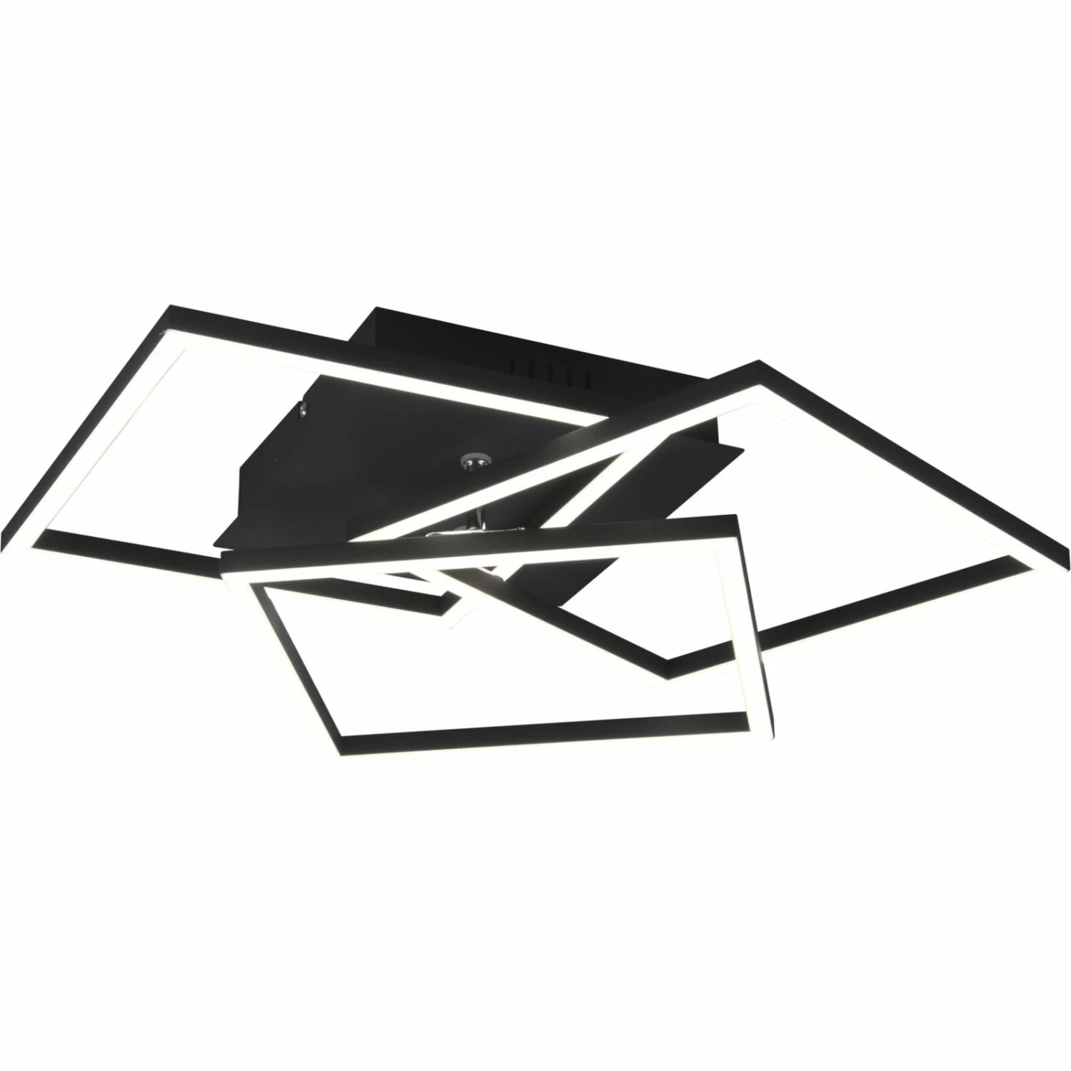 Attraktiver Blickfang mit schwenkbaren Modulen: die LED-Deckenleuchte für moderne Lichtkonzepte im Innenbereich. Die Leuchtmodule in Quadratform sind übereinander angebracht und lassen sich einzeln bewegen. Mit jeder Veränderung entsteht ein anderes Erscheinungsbild. Optisch zeichnet sie sich durch die flache und elegante Bauweise aus. Die fest in der Deckenlampe verbauten LED-Leuchtmittel überzeugen mit einer hohen Lebensdauer. Je nach Einstellung sorgen sie für ein warmeißes bis kaltweißes Licht im Raum, das dimmbar ist. Die Steuerung erfolgt bequem über die zum Lieferumfang gehörende Fernbedienung. Setzen Sie besondere Akzente in Ihrem Zuhause mit dieser Deckenleuchte. Sie eignet sich für das Wohn- und Esszimmer als auch für den Arbeitsbereich.
