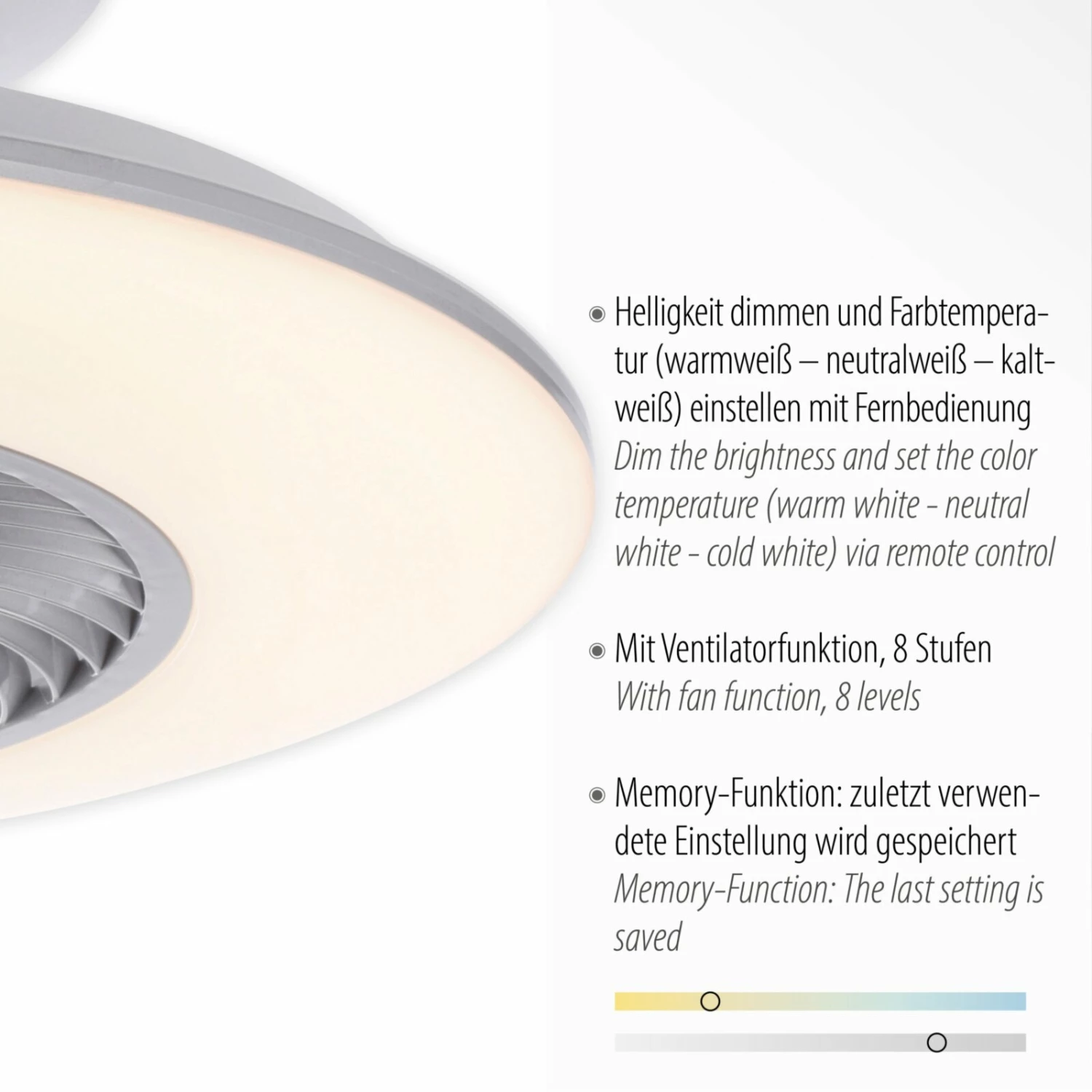 LED-Deckenleuchte – stahlfarben – mit Ventilator