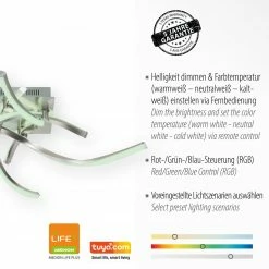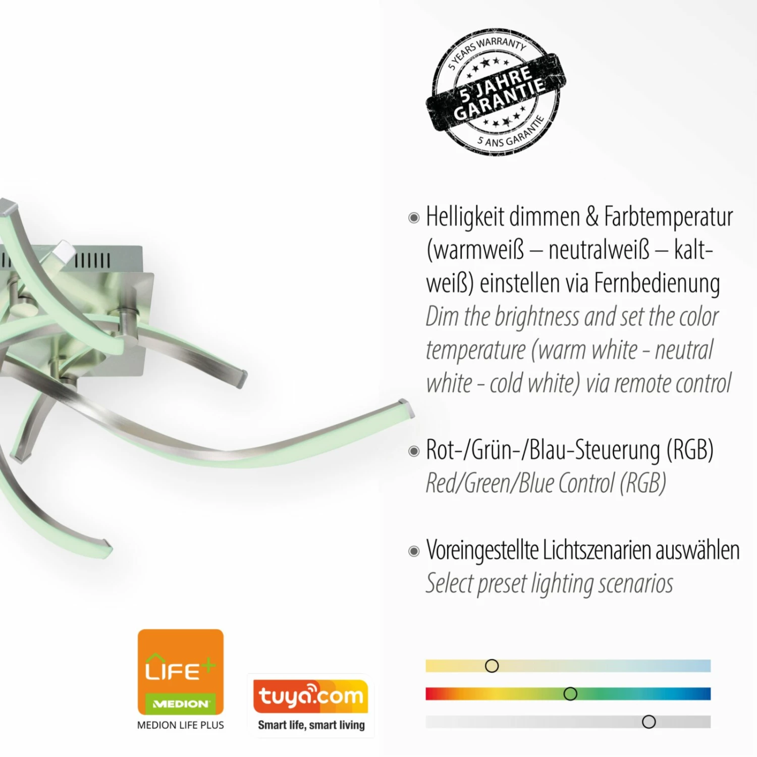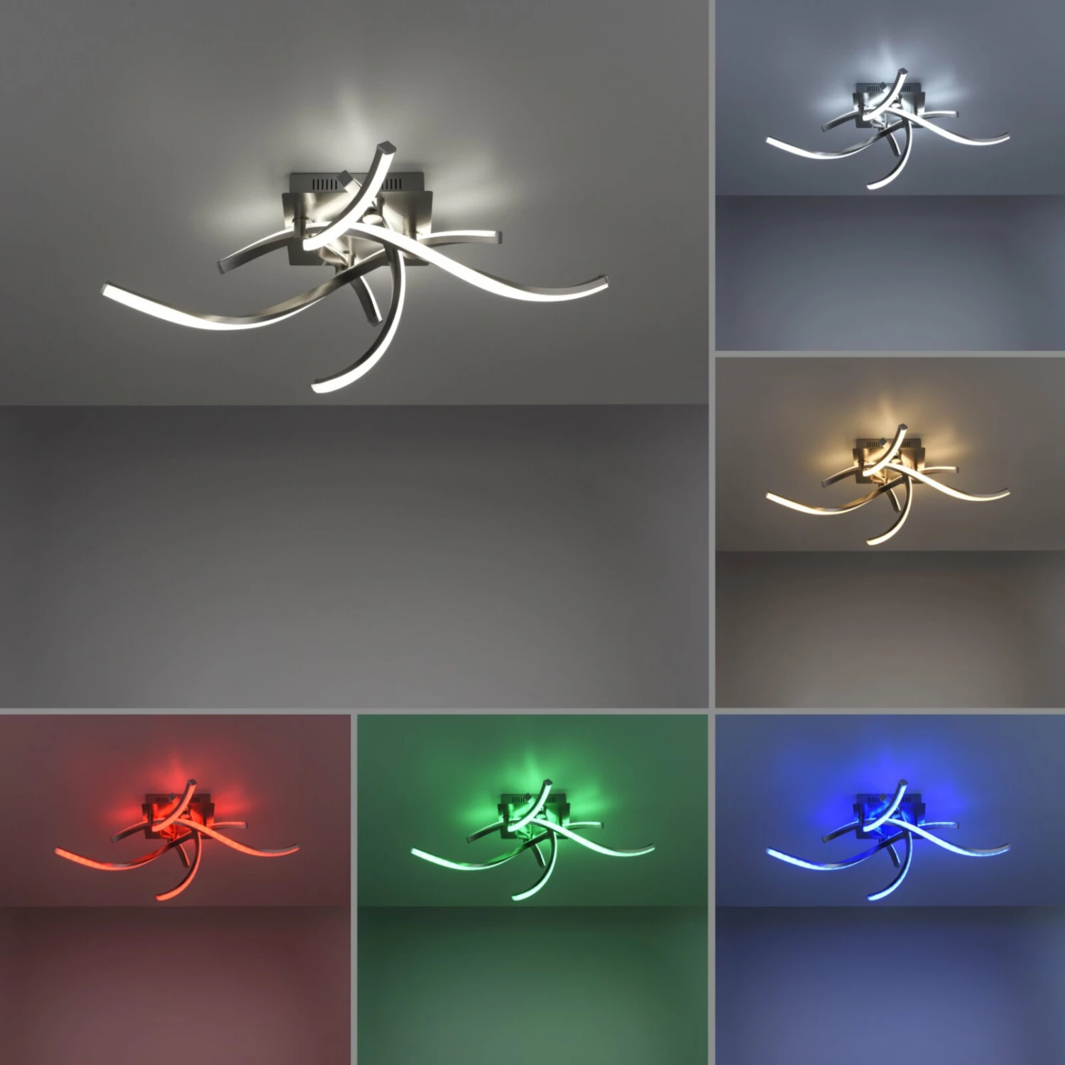 Mit dieser schön geschwungenen LED-Deckenleuchte erhellen Sie Ihren Raum in bester Weise! Dank Smart Home können Sie diese Lampe über Ihr Smartphone steuern und so die Farbe oder auch die Farbtemperatur perfekt anpassen. Diese Anpassungen können auch mit der mitgelieferten Fernbedienung vorgenommen werden.