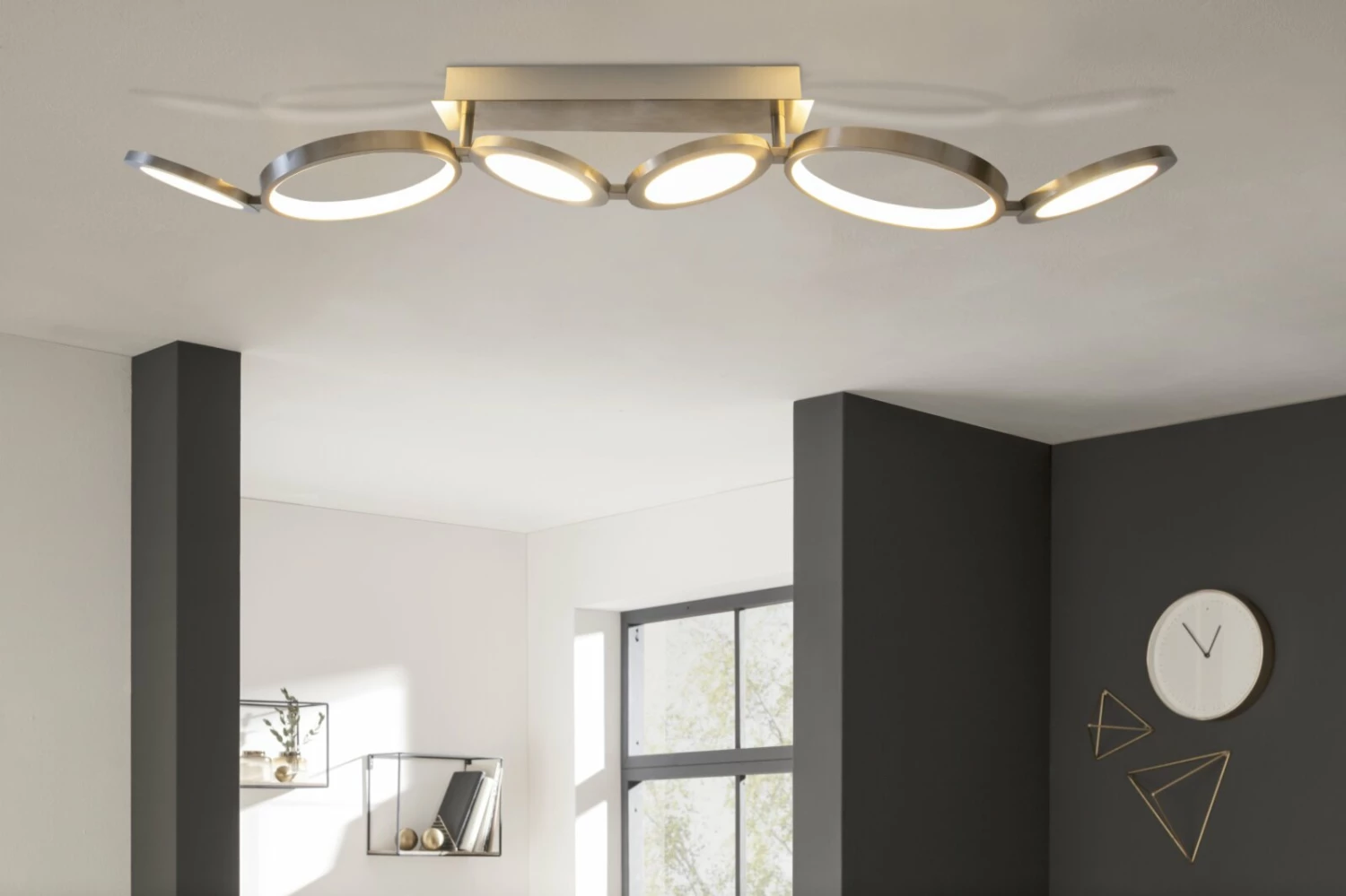 Die LED-Deckenleuchte STELARI eignet sich für die verschiedensten Räumlichkeiten und wird mit ihren 210 LEDs für reichlich Licht sorgen. Die kreisförmigen Elemente machen diese Deckenlampe zum echten Hingucker.