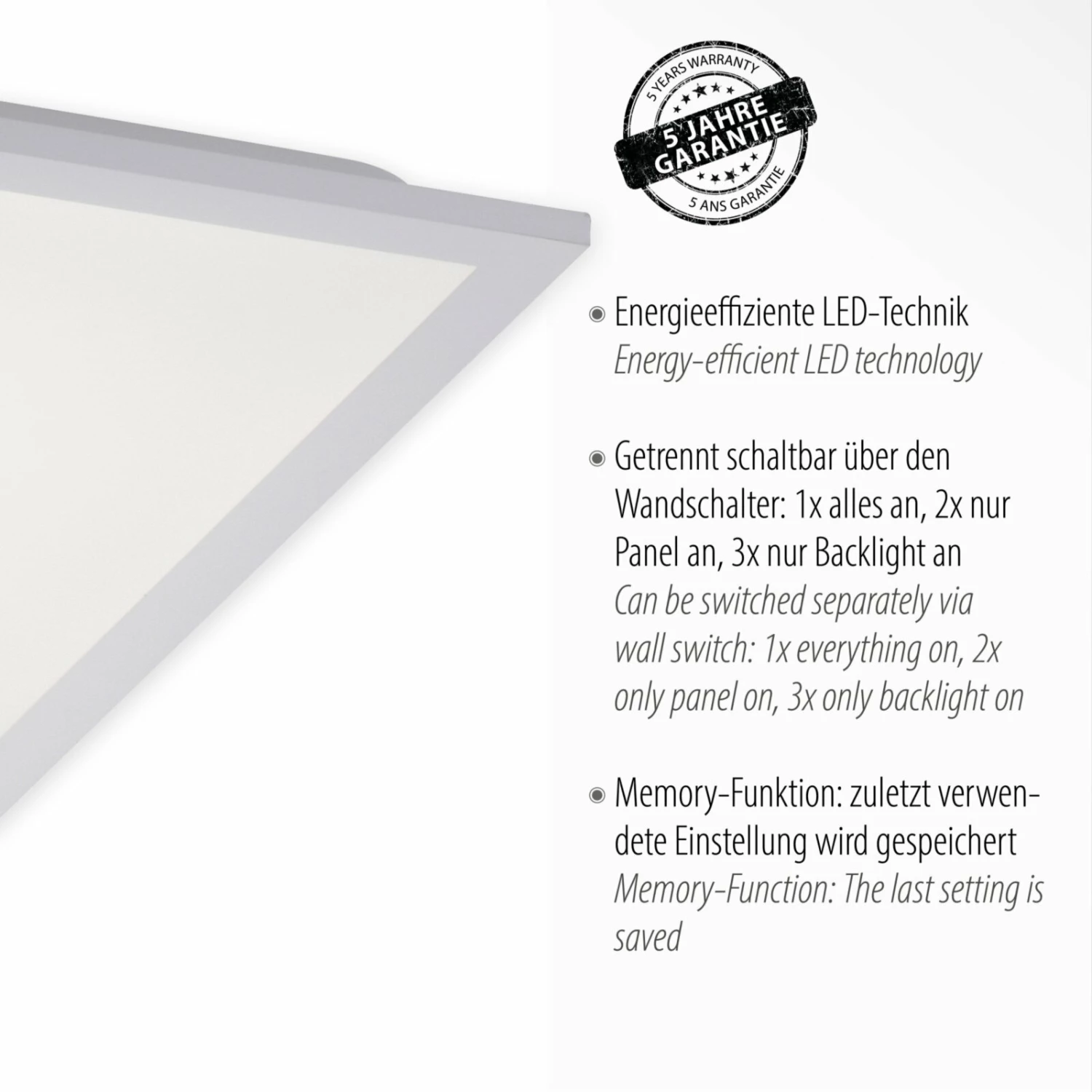 Die quadratische LED-Deckenleuchte überzeugt nicht nur durch ein modernes Design, sondern vorallem durch das integrierte indirekte Backlight. Beide LED-Module lassen sich seperat voneinander schalten, sodass Sie diese Deckenleuchten nach Ihren Belieben anpassen können. Dank der Farbtemperatur von 3000 Kelvin, wird eine warmweiße Wohlfühatmosphäre geschaffen.